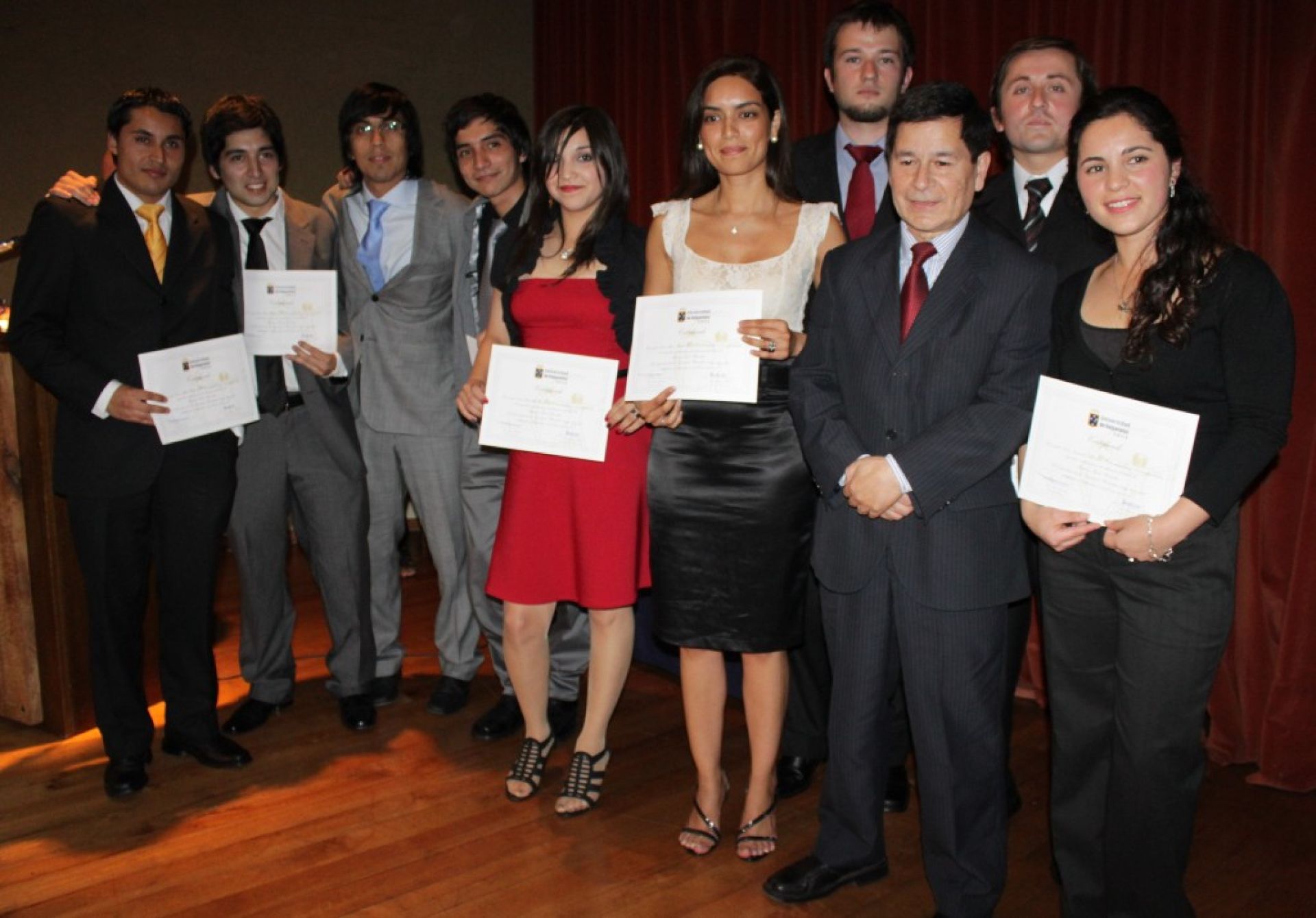 La carrera premió a los nuevos profesionales destacados por su alto rendimiento, responsabilidad y compromiso. En la carrera de Ingeniería Civil Biomédica, el Premio Excelencia Académica fue para Carlos Fernández, y en Ingeniería Biomédica, para Krystell Caroca.