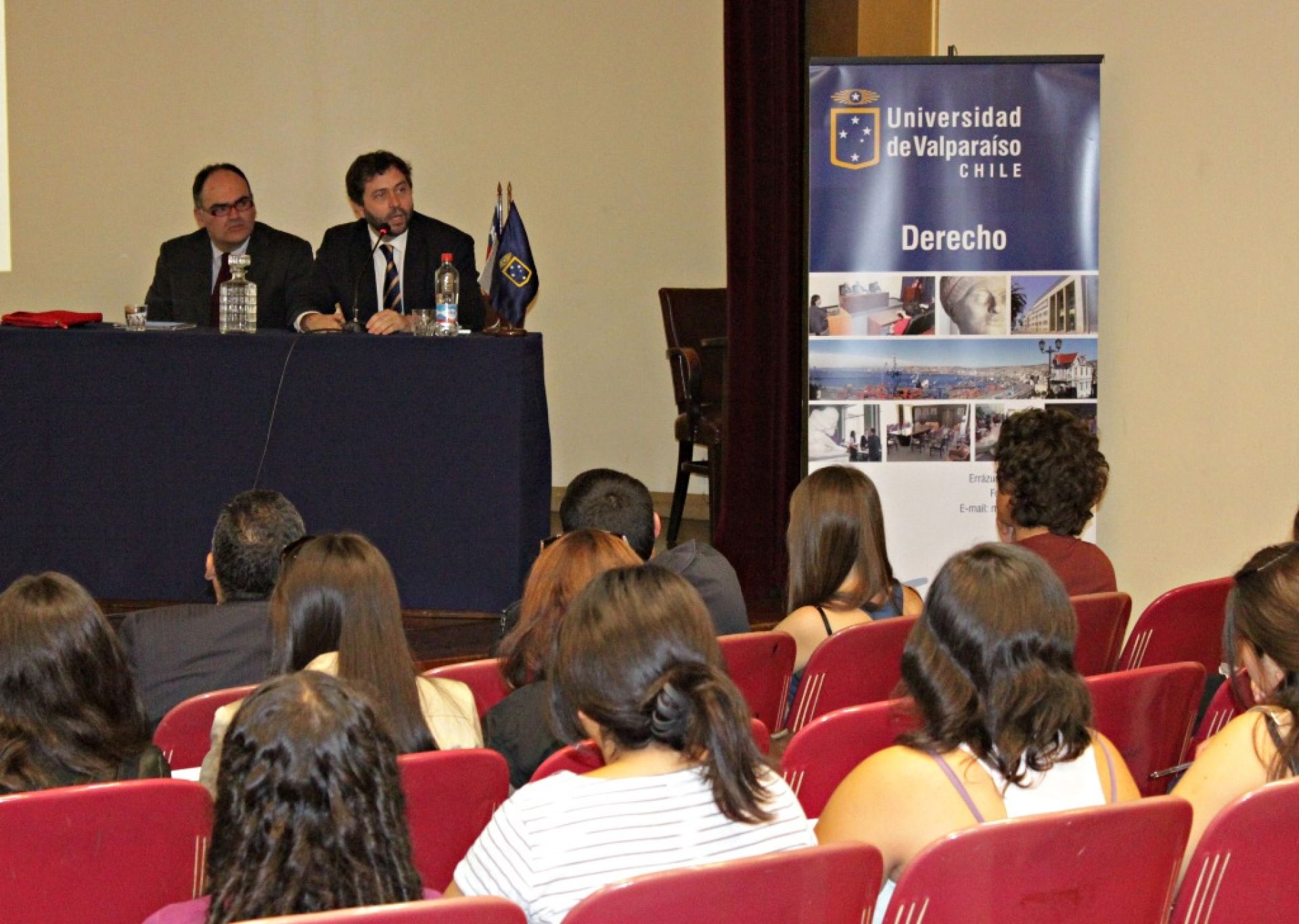 La exposición, denominada “Competencia en el mercado del transporte aéreo. La fusión Lan-Tam”, se efectuó en el Aula “Luis Vicuña Suárez” de la Facultad de Derecho y Ciencias Sociales UV, y asistieron el director de la Escuela de Derecho, Ricardo Saavedra, académicos y estudiantes de varias universidades de la zona.