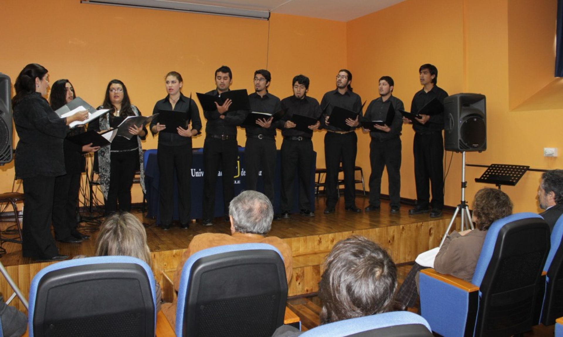 La Camerata Vocal, creada a partir del coro de la carrera de Música, es dirigida por la profesora Ximena Soto. La agrupación fue formada para desarrollar la investigación e interpretación de repertorios de diversas texturas, estilos y complejidades, acorde a los lineamientos de la propia carrera. En la ocasión, la formación interpretó los temas “Luz aeterna”, de Fernando Moruja, Argentina; “Oh qué será”, de Tomás Lefever, Chile, y “Earth song”, de Franck Ticheli, Estados Unidos.
