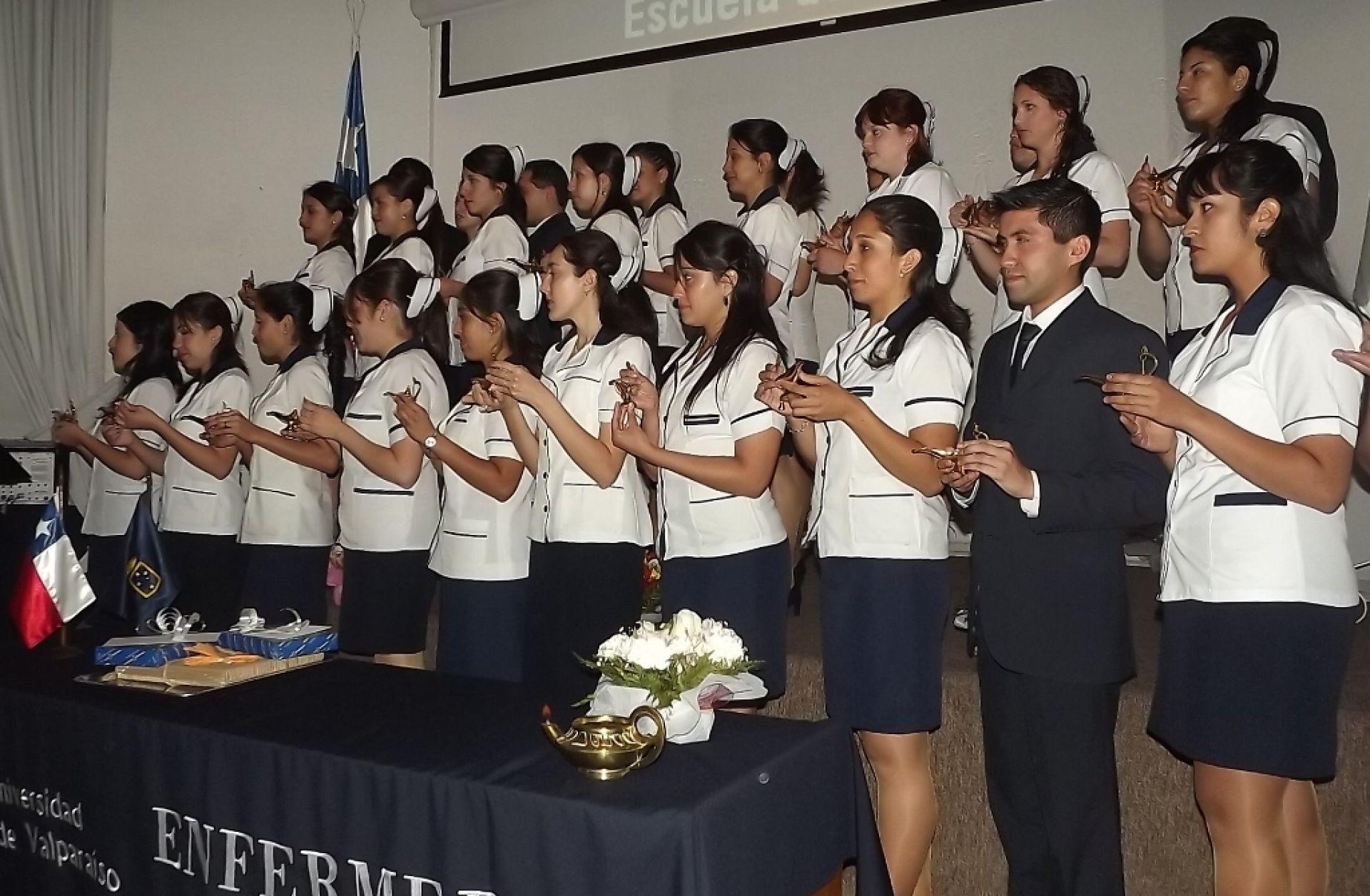 En la ocasión, la jefa de carrera, María Angélica Colvin, tomó el juramento a los nuevos profesionales, de entre los cuales se distinguió a Jasmín Jofré Rodríguez, por ser la profesional que mejor rendimiento tuvo a lo largo de su carrera; a Javiera Hurtado Barriga, como la egresada que mejor rendimiento alcanzó en las asignaturas profesionales; a Valentina Castro Godoy, quien recibió el Premio Colegio Profesional de Enfermeras, y a David Rodríguez Zamora, escogido como el mejor compañero.