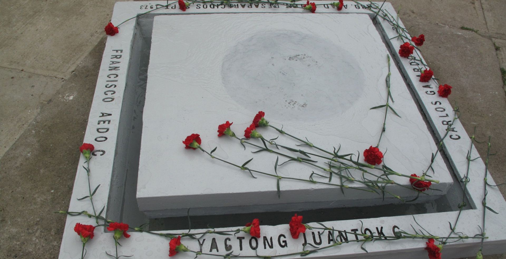 La actividad finalizó con cada uno de los integrantes depositando un clavel rojo en la fuente de agua que a modo de memorial, tiene los nombres de los profesores y el alumno desaparecidos.