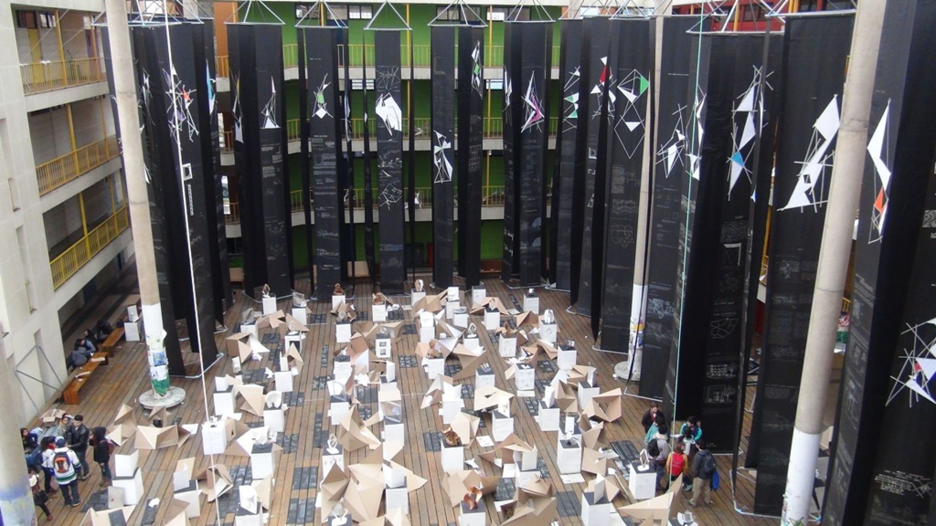 Juan Esteban Alvarado, profesor del Taller de Arquitectura de primer año, académico a cargo de la muestra, explica que este año se focalizaron “en el diseño, en la capacidad de hacer que tienen los alumnos, quienes armaron estructuras y soportes. La muestra trata de dar cuenta de qué tanto pueden lograr que esto se constituya como tal”.