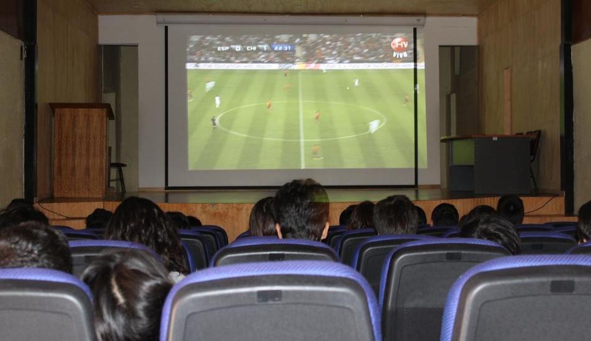 El partido amistoso en que Chile y España empataron 2-2 fue la excusa perfecta para que alumnos, académicos y funcionarios pudieran conocer mejor las bondades que ofrece el refaccionado teatro del Campus Santiago.