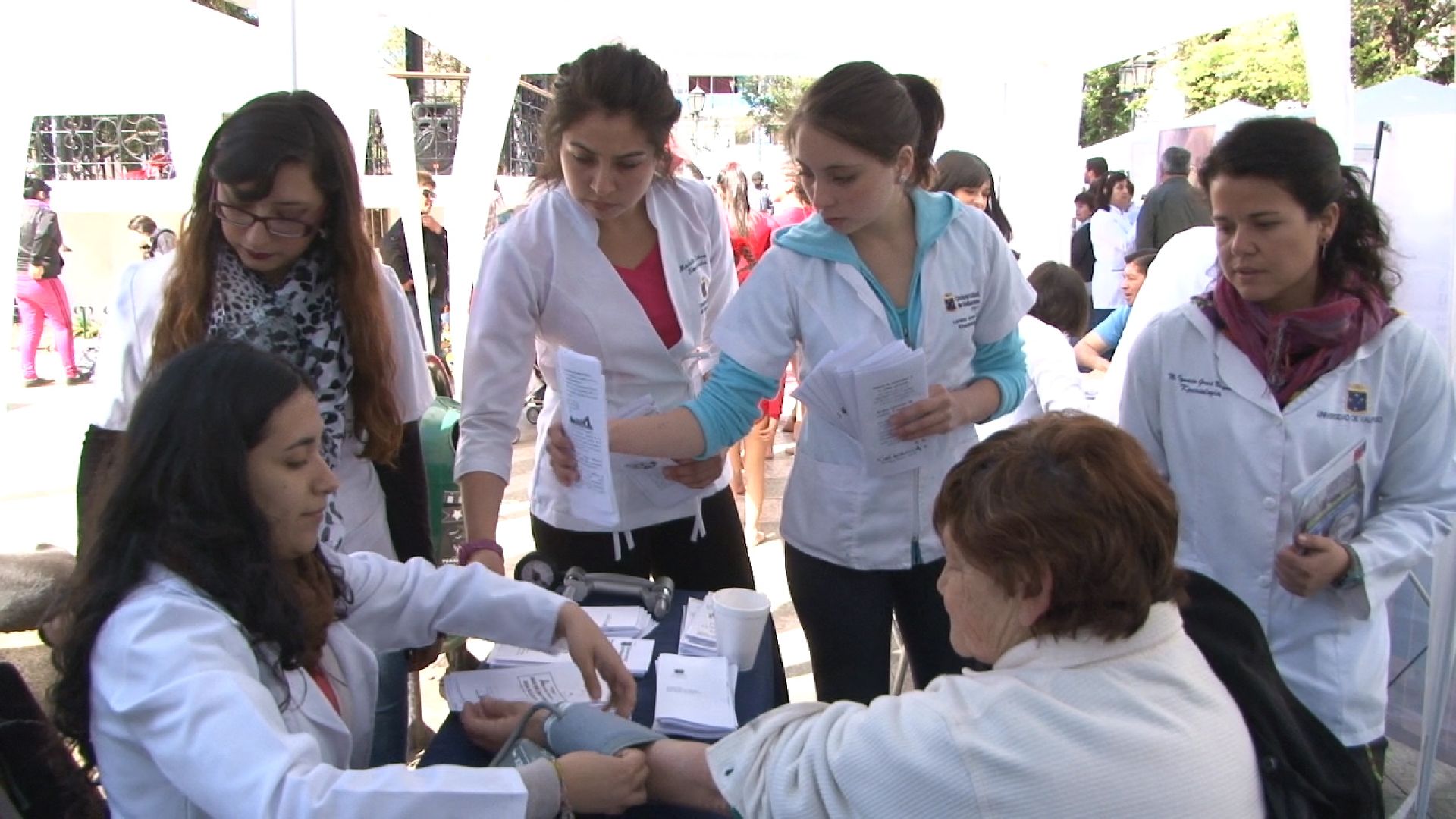 La iniciativa contó con la participación de los estudiantes del área de salud, quienes realizaron chequeos preventivos a los transeúntes.