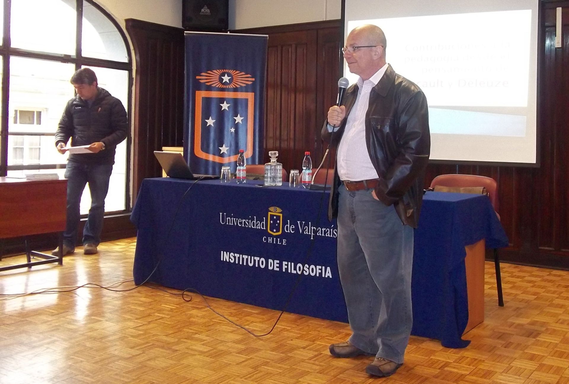 Su visita contempló la reunión con académicos y estudiantes de las universidades de Chile, Metropolitana de las Ciencias de la Educación y la Universidad de Valparaíso, en la que presentó “Contribuciones a la pedagogía desde la filosofía de Foucault y Deluze”, en el auditorio Sergio Flores Farías de la Facultad de Humanidades, gracias a una invitación del Instituto de Filosofía.