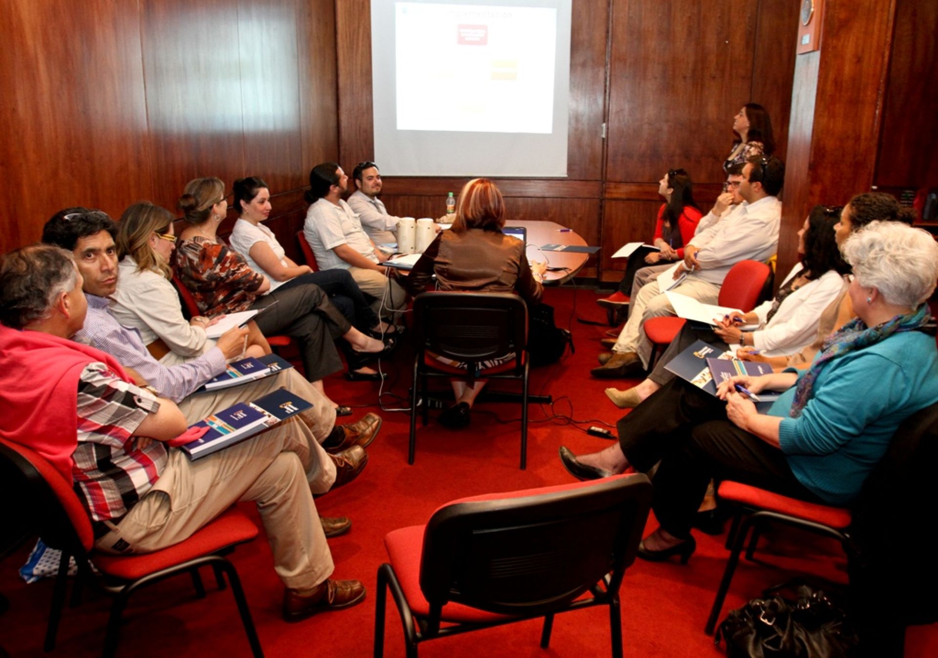 En el Salón Rojo se llevó a cabo el primer encuentro de profesores de inglés que este año participan del Programa de Atención Preferencial a Primeros Años, coordinado por el Centro de Competencias Comunicativas, que busca nivelar a los estudiantes que ingresan a la Universidad en materias como lengua materna y anglosajona.