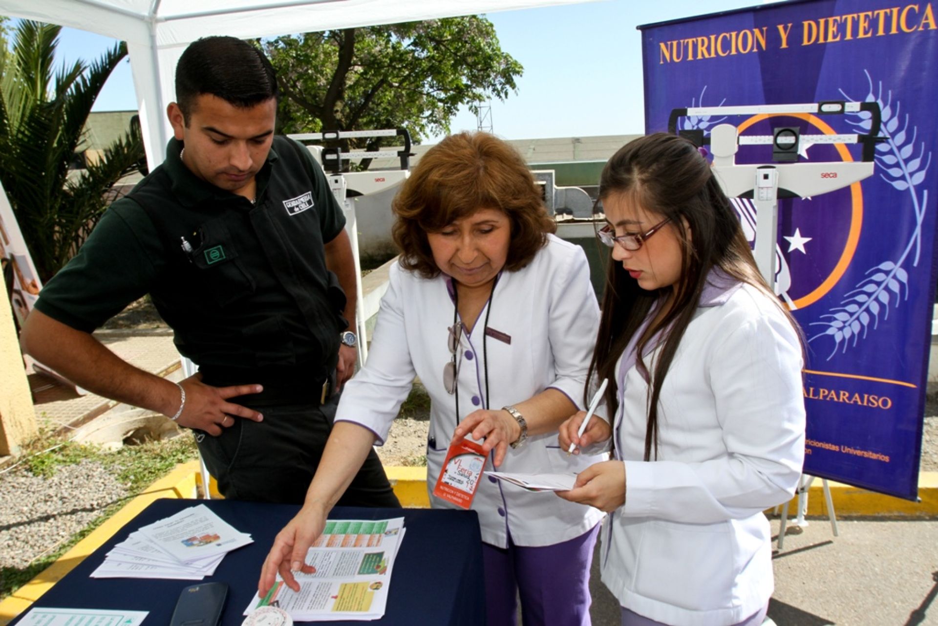 Para ello alumnos y académicos de ambas carreras levantaron el stand de la UV, con el objetivo de entregar a los funcionarios de Gendarmería la más completa información a través de folletería y consejería de los expertos, que incluyó, entre otras, evaluaciones antropométricas, con las que se determinan los diferentes niveles y grados de nutrición de un individuo.