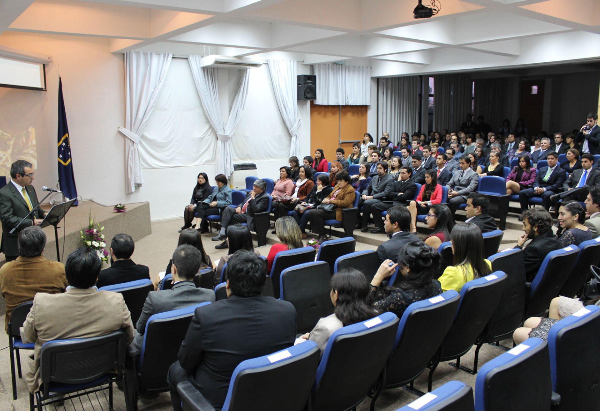 La ceremonia estuvo presidida por el decano de la Facultad de Medicina, doctor Antonio Orellana Tobar; el director de la Escuela de Tecnología Médica, Andrés Ibarra Pérez; la directora del Campus San Felipe, doctora Carmen Castillo Taucher, y la jefa de carrera, Carolina Tapia.