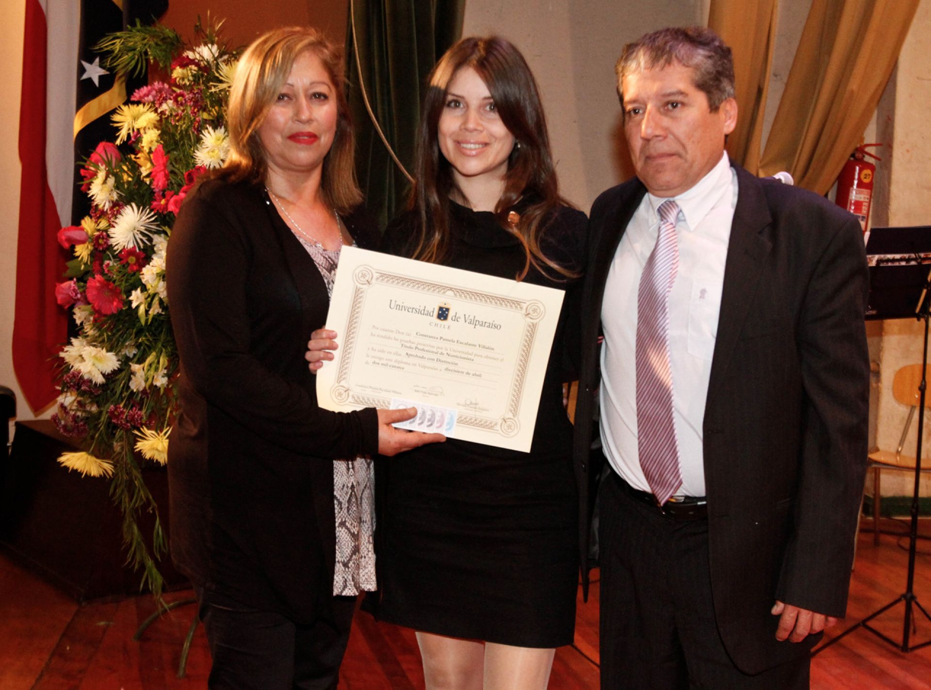 Presidió la ceremonia (en representación del rector) la directora de Investigación de la Universidad de Valparaíso, Marcela Escobar. La acompañaron la decano subrogante de la Facultad de Farmacia, profesora Cecilia Rubio; la directora de la Escuela de Nutrición y Dietética, Marcela Alviña; el jefe de carrera de Nutrición y Dietética, profesor Rafael Jiménez, además de directores de los campos clínicos; docentes y funcionarios; representantes de empresas del área de Alimentos y Nutrición; junto a padres y familiares de los nuevos profesionales.