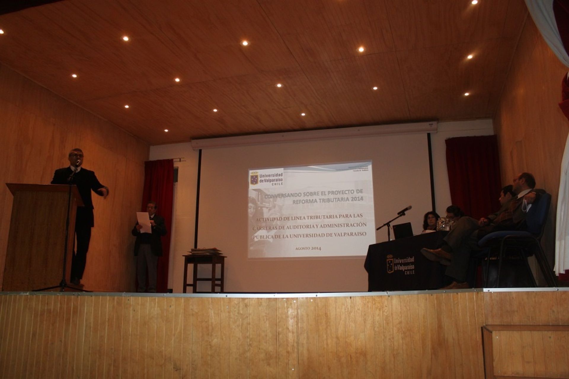 Ante un teatro del Campus Santiago repleto de público, las carreras de Auditoría y Administración Pública de la Universidad de Valparaíso reflexionaron sobre los alcances del proyecto de reforma tributaria que hoy se discute en el Congreso Nacional.
