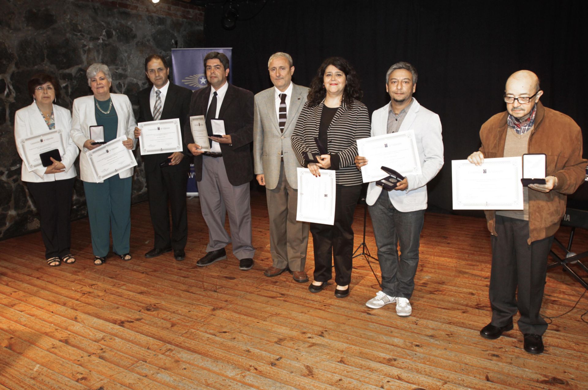 Los académicos, distinguidos en una ceremonia realizada en la sala Rubén Darío del Centro de Extensión UV, son los siguientes: Patricia Carreño, de la Escuela de Química y Farmacia; Bernardita Campos, de la Facultad de Ciencias del Mar y de Recursos Naturales; Mario Cáceres, también de Ciencias del Mar; Patricio Suzarte, de la Escuela de Ingeniería Civil Industrial; Andrea Aspée, de la Escuela de Diseño; Pablo Venegas, también de Diseño; Osvaldo Fernández, del Instituto de Filosofía; Mario Varela, de la Escuela de Medicina, y Rodrigo Vergara, también de Medicina.