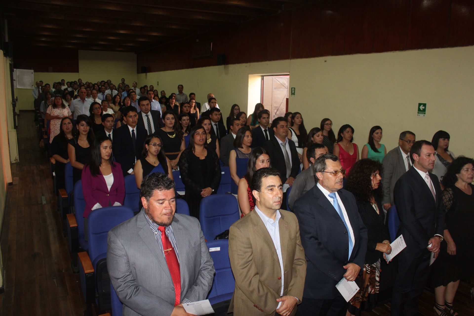 El acto se realizó en el teatro del Campus Santiago y fue presidido por el decano de la Facultad de Ciencias Económicas y Administrativas, Ricardo Barril, y el director de la sede metropolitana de la UV, Galo Herrera. Luego que los presentes entonaran el Himno Nacional, el jefe de la carrera en Santiago, Héctor Fuentes, dio la bienvenida, señalando que “esta ceremonia corona un proceso de mucho esfuerzo, un camino largo con muchas dificultades en algunos casos y que implicó un sacrificio no sólo de ustedes, sino que también de sus familias. Es gratificante estar con ustedes para nosotros que, en algún momento de sus carreras, fuimos sus profesores y aunque sea en una pequeña medida somos responsables de que hoy estén acá. Los quiero invitar a ser artistas de su profesión y que la desempeñen con mucho cariño y con mucha ética, dejando muy en alto el nombre de nuestra escuela y de nuestra universidad. Y, sobre todo, los insto a que jamás olviden el derrotero que han seguido, sus orígenes y las personas que los han ayudado”.