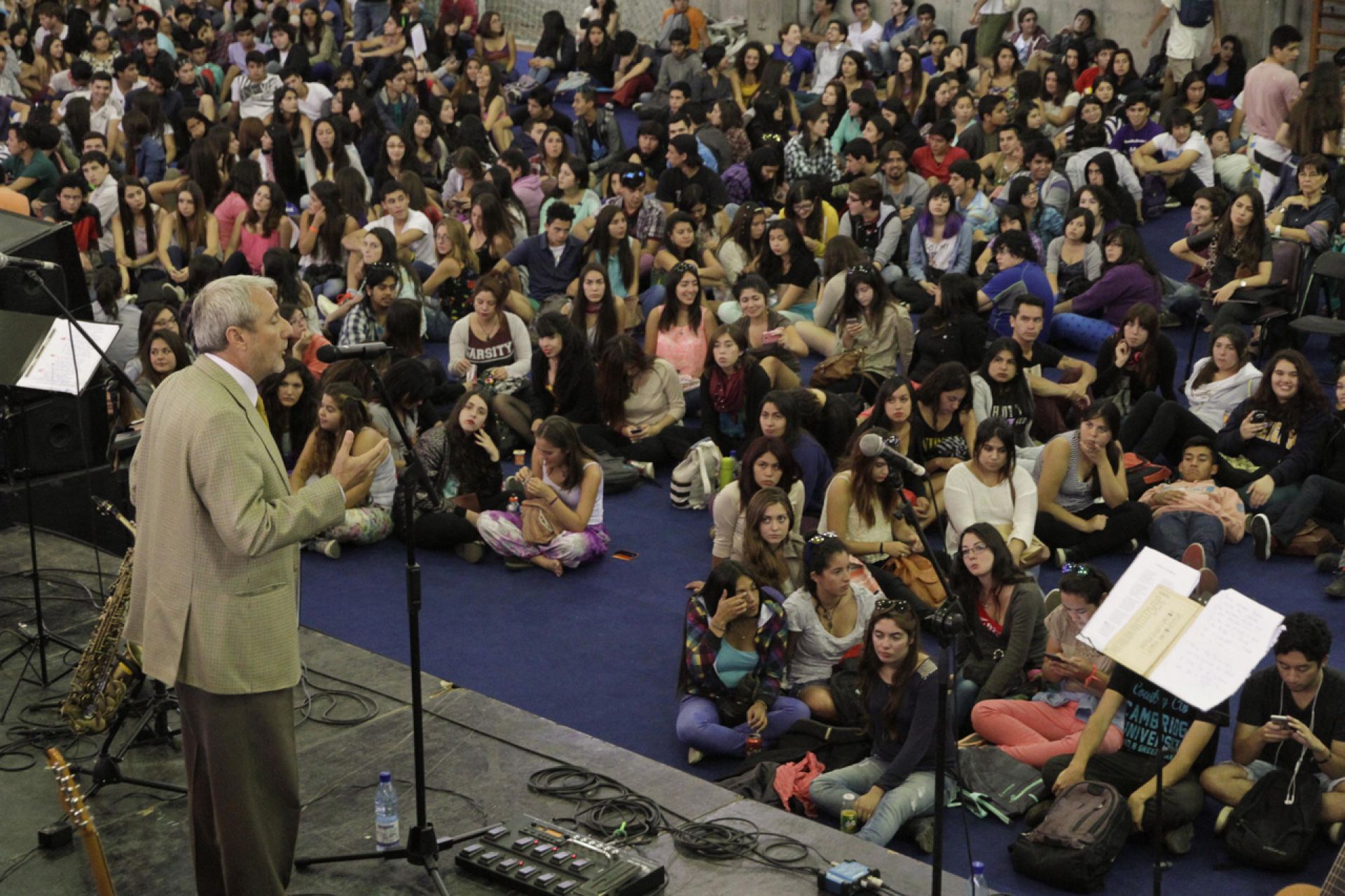 Rector Aldo Valle saludó a los nuevos estudiantes y habló sobre los desafíos en la educación para este año. La música estuvo a cargo de la Orquesta ValParraíso.