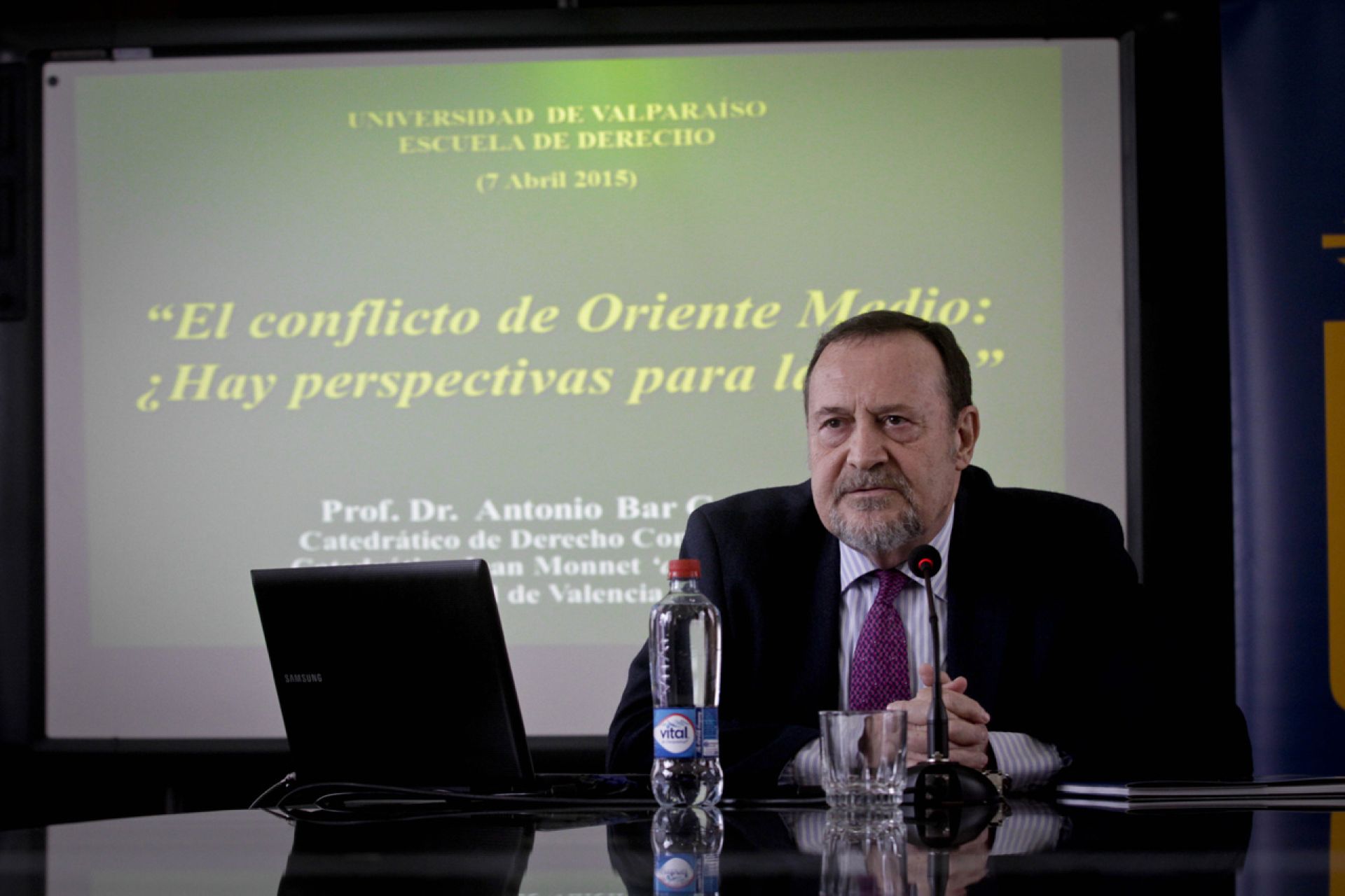 Una completa e interesante charla sobre los conflictos de Oriente Medio, sus orígenes y sus perspectivas de solución ofreció el catedrático de Derecho Constitucional de la Facultad de Derecho de la Universidad de Valencia, España, Antonio Bar Cendón, a la comunidad de la Escuela de Derecho.