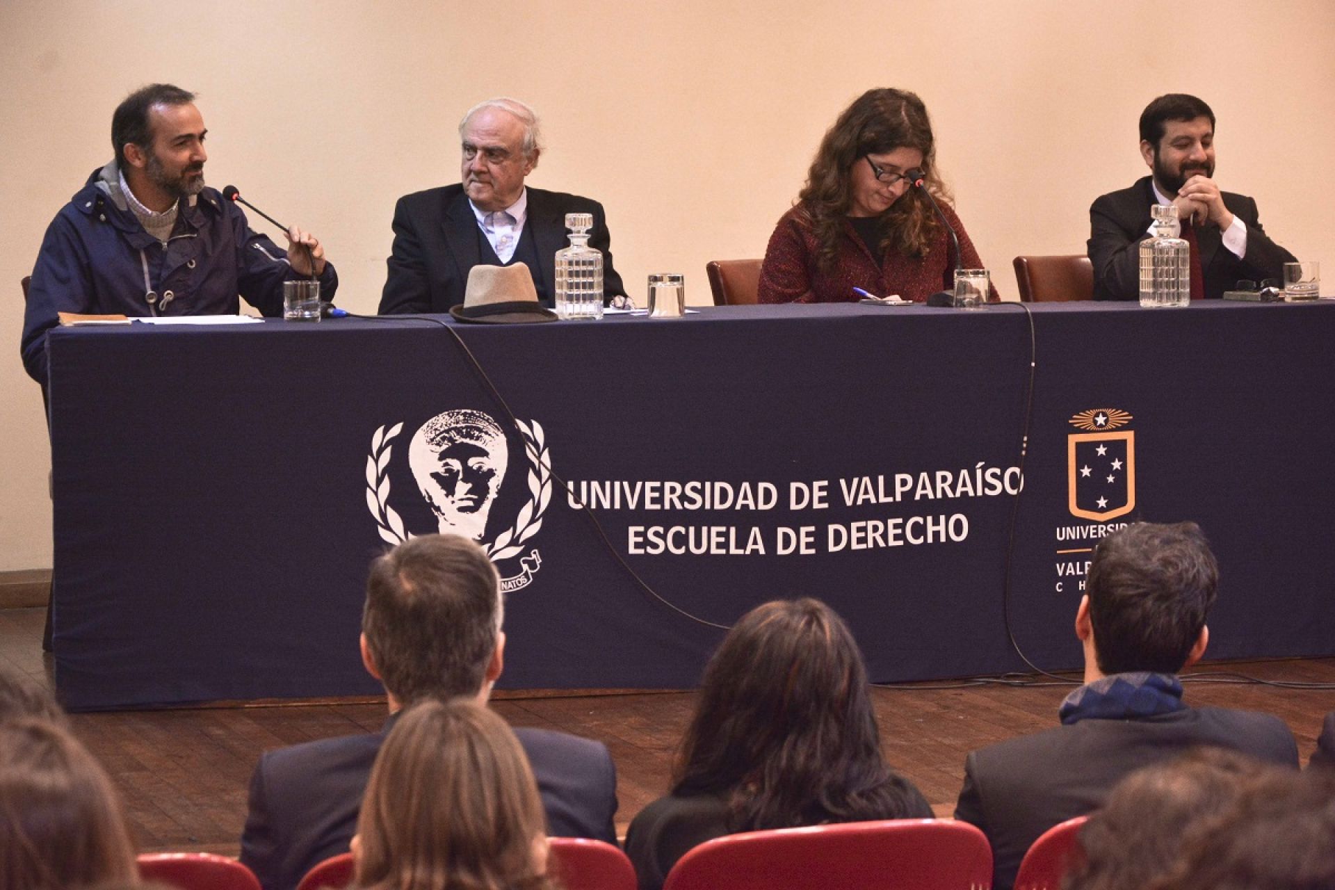 Los expositores fueron los profesores de Derecho UV, Agustín Squella y Ricardo Salas, y el académico de la Pontificia Universidad Católica de Chile y ex alumno de esta Escuela, Matías Valenzuela, actuando como moderadora la coordinadora de Extensión de este plantel, profesora Daniela Marzi.