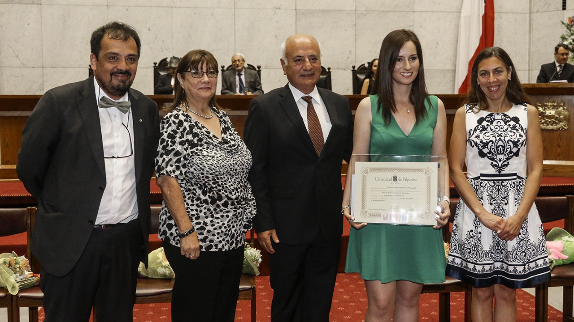 Los diplomas les fueron entregados por sus respectivos padres en una ceremonia que se realizó en el Salón de Plenarios del Congreso Nacional, la cual fue encabezada por el rector Aldo Valle; junto al decano de la Facultad de Medicina, Antonio Orellana; y el director de la Escuela de Medicina, Cristian Salazar.