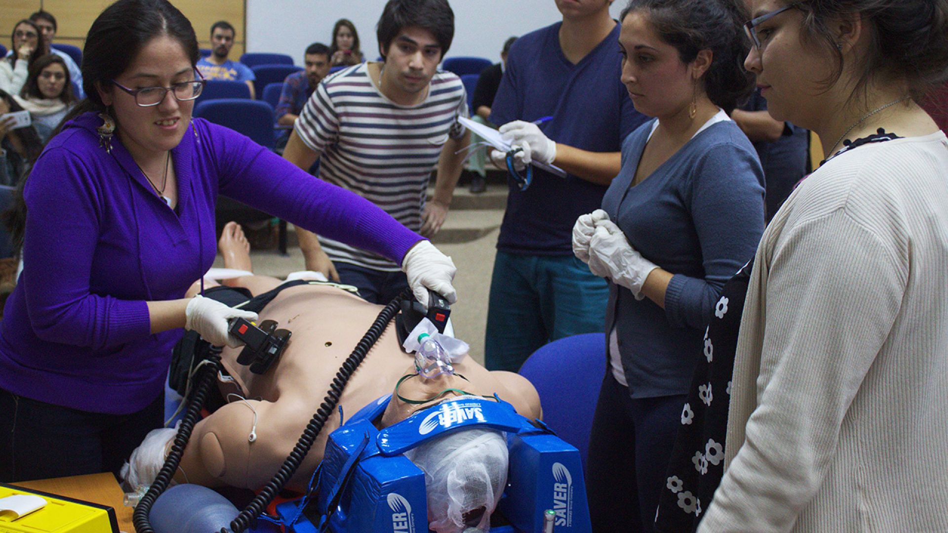 Junto a esto, se efectuaron dos talleres de simulación clínica en RCP avanzada, en la cual los estudiantes de quinto año de Enfermería y profesionales de urgencia del valle de Aconcagua manipularon y trabajaron con uno de los modernos fantomas que tendrá el nuevo Centro de Simulación Clínica del campus San Felipe, con un costo de 50 millones de pesos.