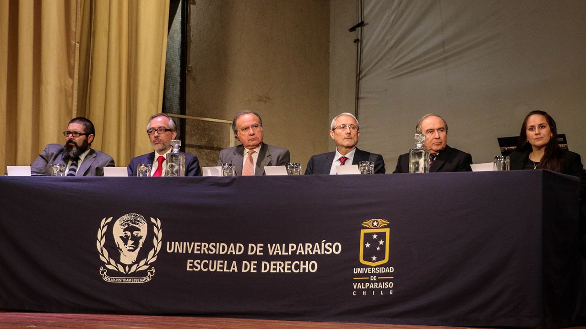 El evento fue presidido por el rector Aldo Valle, quien estuvo acompañado por el presidente de la Junta Directiva de la UV, Gerardo Donoso; el decano de la Facultad de Derecho y Ciencias Sociales, Alberto Balbontín; el director de la Escuela de Derecho, Claudio Oliva; la presidenta del Centro de Estudiantes, Javiera Seguel; y el académico de la Facultad de Derecho de la Universidad de Chile y conferencista invitado, doctor Claudio Nash.
