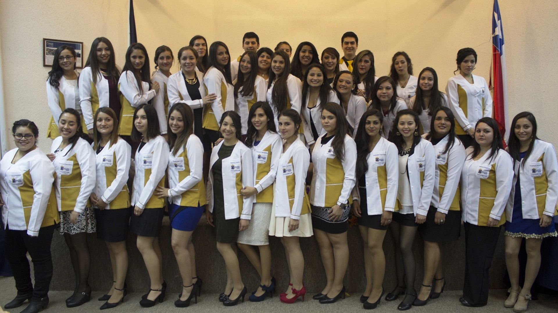 El grupo de estudiantes recibió de manos de la jefa de la carrera de Fonoaudiología, Soledad Narea, el delantal blanco y cada uno firmó el código de honor en el cual se comprometen a entregar una atención oportuna y a mantener la confidencialidad de los exámenes que practiquen durante este período.