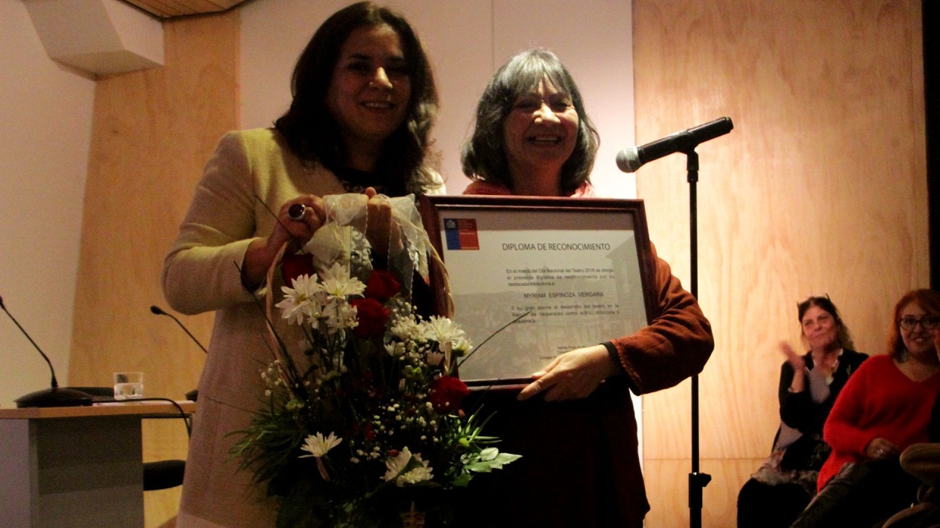 En la ceremonia estuvo presente el decano de la Facultad de Arquitectura de la Universidad de Valparaíso, Juan Luis Moraga; y los tres directores de las escuelas de teatro de la región, Cristian Figueroa (de la Universidad de Valparaíso), Alejandra Valera (Duoc Viña del Mar) y Giullio Ferreto (de la UPLA), como así también amigos de Myriam, actores y actrices de esta ciudad.