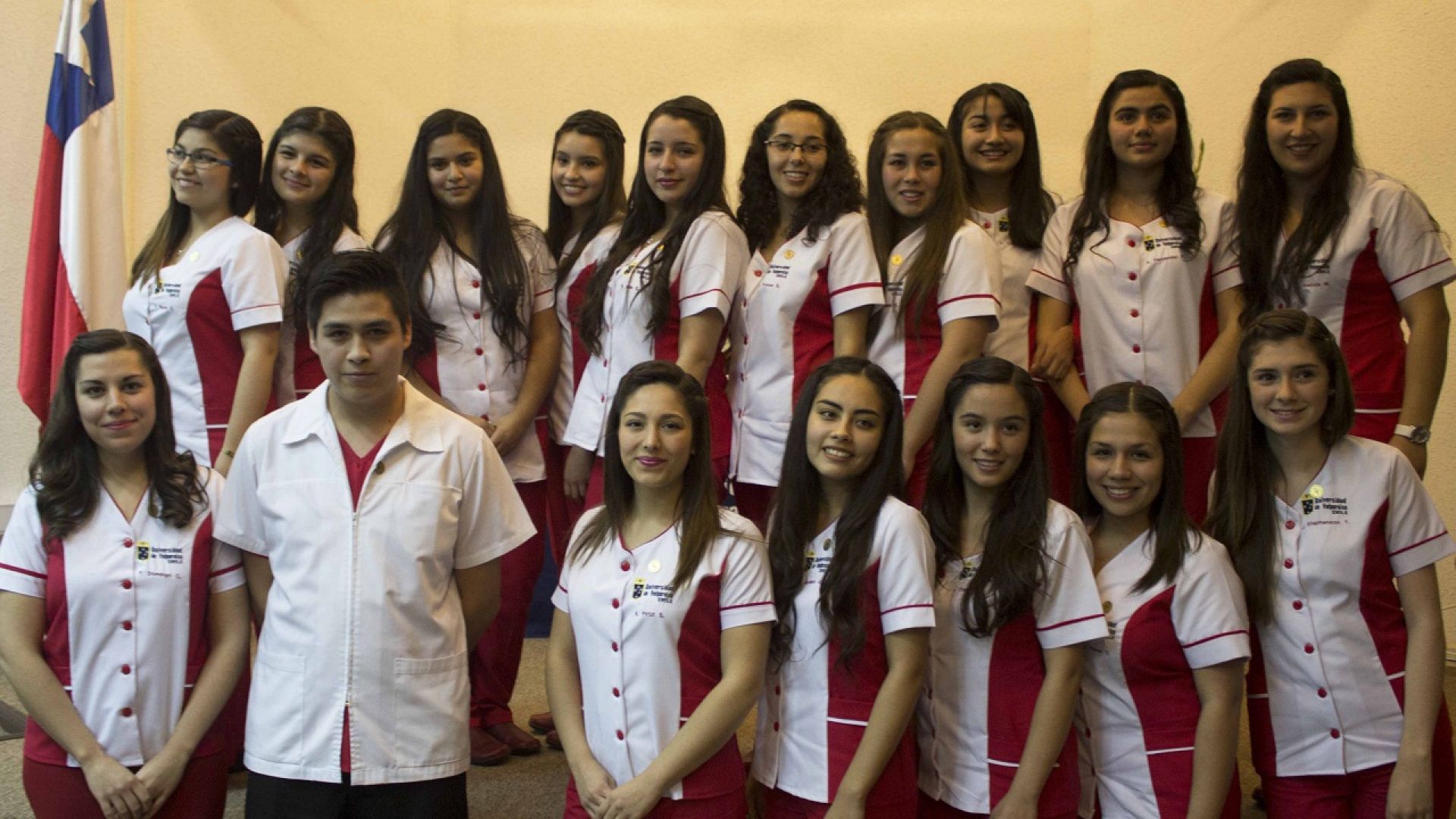 Es así como los estudiantes visten por primera vez el uniforme y reciben una piocha que los identifica con su escuela, dando inicio al trabajo propio de práctica hasta que obtienen su título profesional, relacionándose de forma directa con los pacientes.