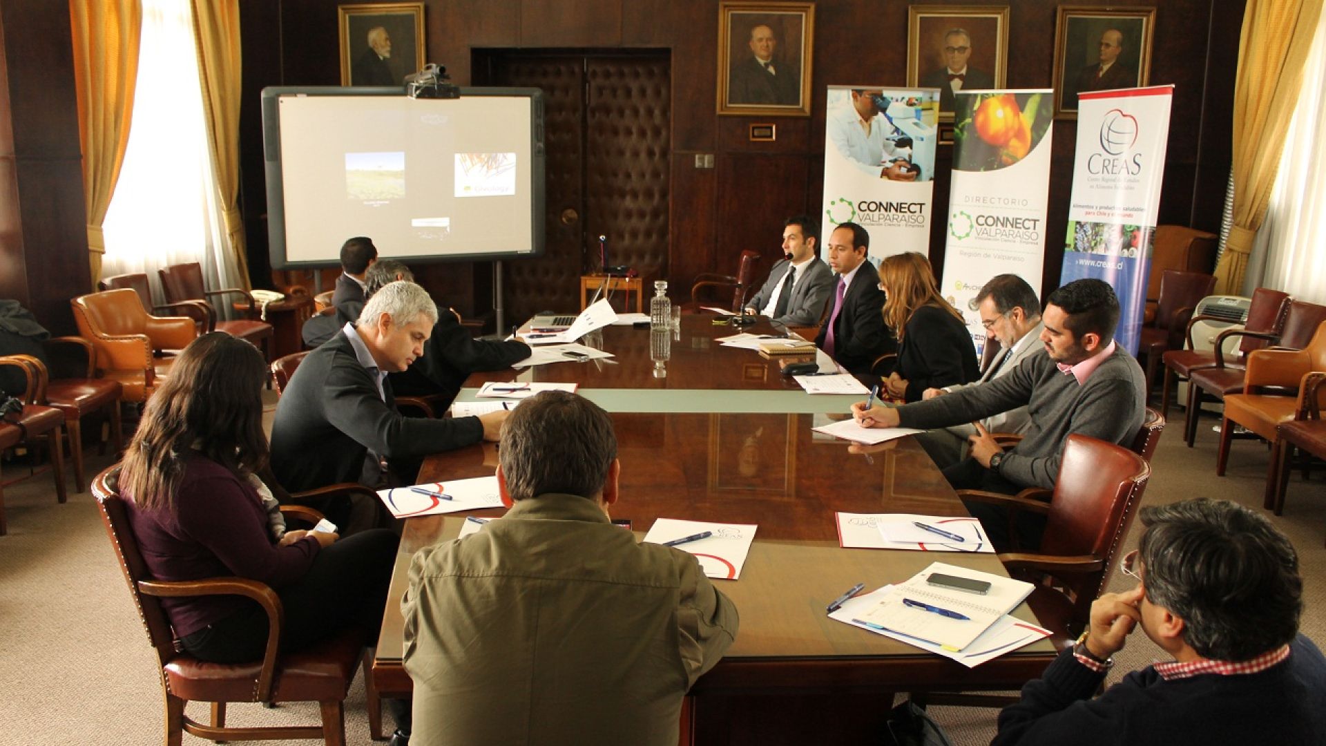 El directorio, que se reunió en el salón del Consejo de la Escuela de Derecho de la UV, está integrado por Fernando Vicencio, director regional de CORFO Valparaíso; Alejandro Corvalán, director regional de ProChile; José Ricardo Aliaga, CORE; María Elvira Zúñiga, directora de Creas; Alejandro Osses, gerente general de Creas; Jorge Pereda, gerente de ANI Chile de la Universidad de Valparaíso; Claudia Fernández, directora del Programa Fomento ASOEX Valparaíso; Pedro García, director regional de Fedefruta; Juan Pablo Vega, director del Programa Regional de CONICYT; Ernesto Molina, gerente general de Molina Hermanos; Patricio Araneda, gerente general de Grupo IDiN; Sergio Almonacid, investigador de la UTFSM; y José Ricardo Pérez, investigador de CeTA.