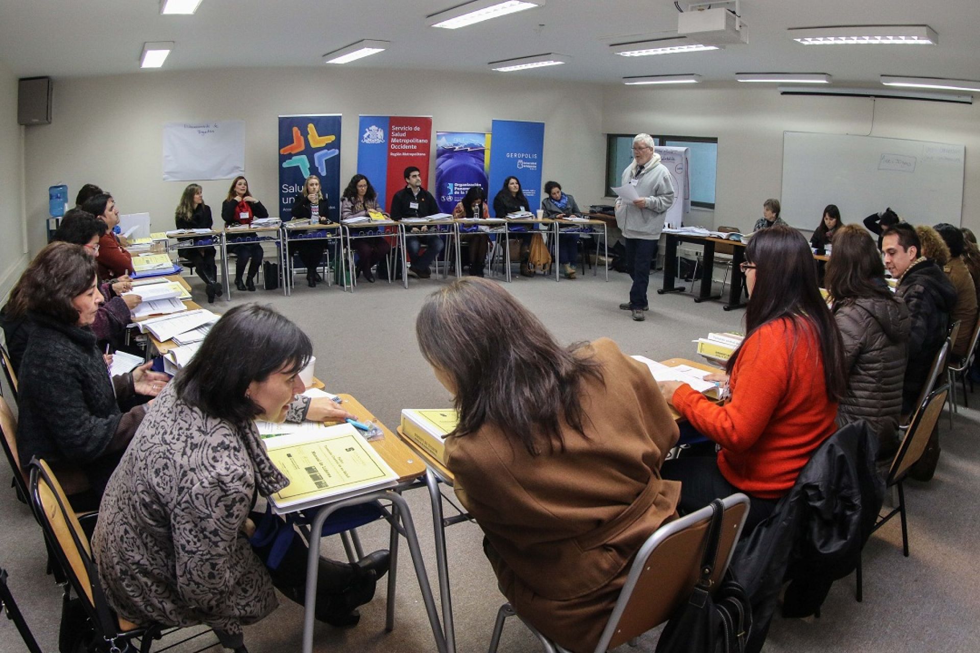 A la sesión inicial asistieron el consultor en sistemas y servicios de salud de la OPS en Chile, Javier Uribe; la jefa del Departamento de Ciclo Vital de la Dirección de Prevención y Control de Enfermedades del Ministerio de Salud, Carolina Asela; el director del Servicio de Salud Metropolitano Occidente de la Región Metropolitana, Vladimir Pizarro, el decano de la Facultad de Medicina de la UV, Antonio Orellana, y la directora ejecutiva del PMI Gerópolis, Viviana García.