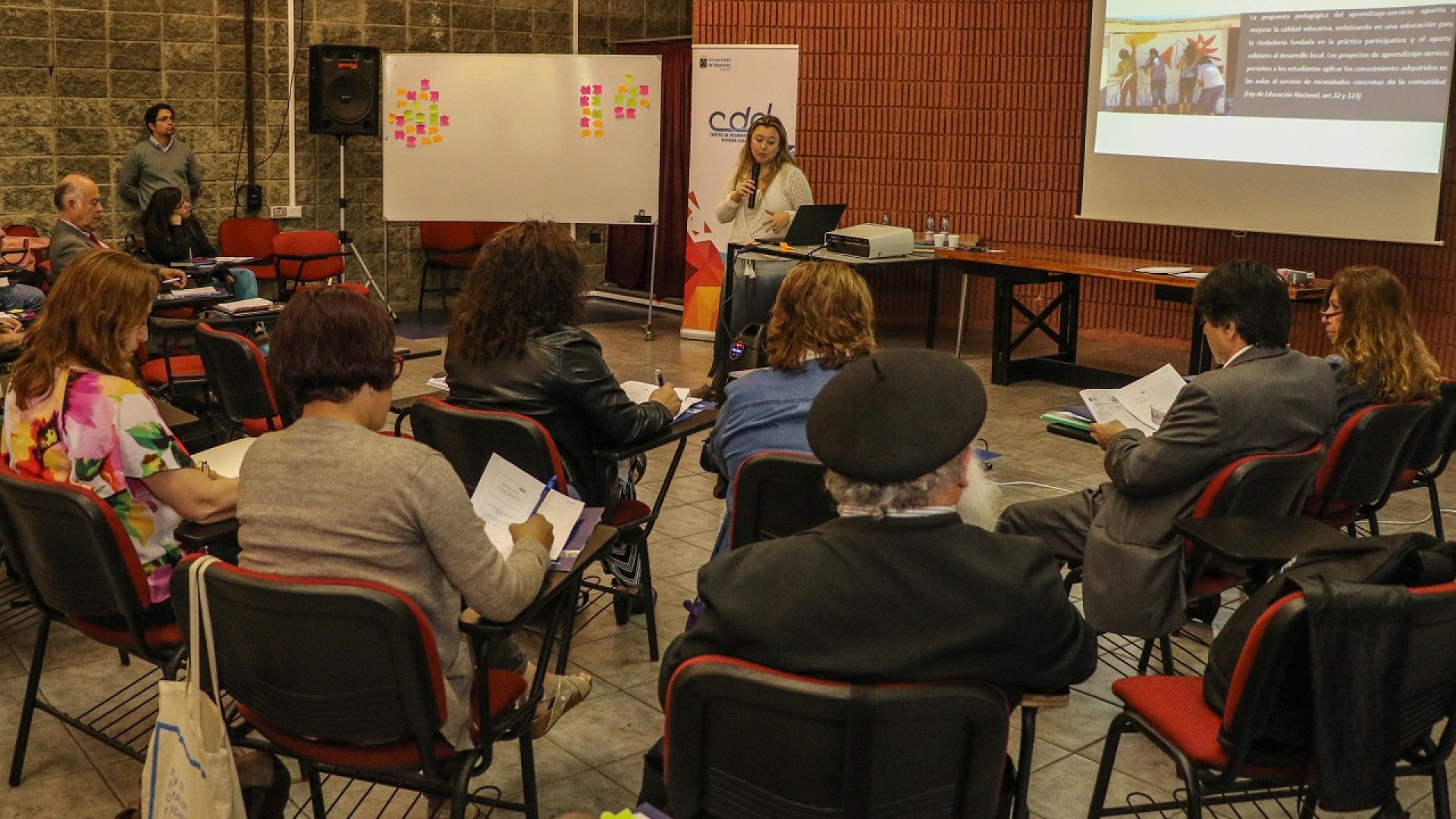 En la sala Juan Araya de la Facultad de Arquitectura se realizó el taller “Aprendizaje + Servicio y TIPE”, convocado por el Centro de Desarrollo Docente en el marco de las actividades del Convenio de Desempeño “Los estudiantes primero”. El objetivo del espacio era ser una instancia para conocer, reflexionar y analizar contenidos vinculados a la metodología de Aprendizaje + Servicio, conociendo sus fundamentos conceptuales y los elementos que son constitutivos de su implementación. La convocatoria del taller fue más elevada de lo esperado, registrándose un número de inscritos que superó el cupo inicial planificado.