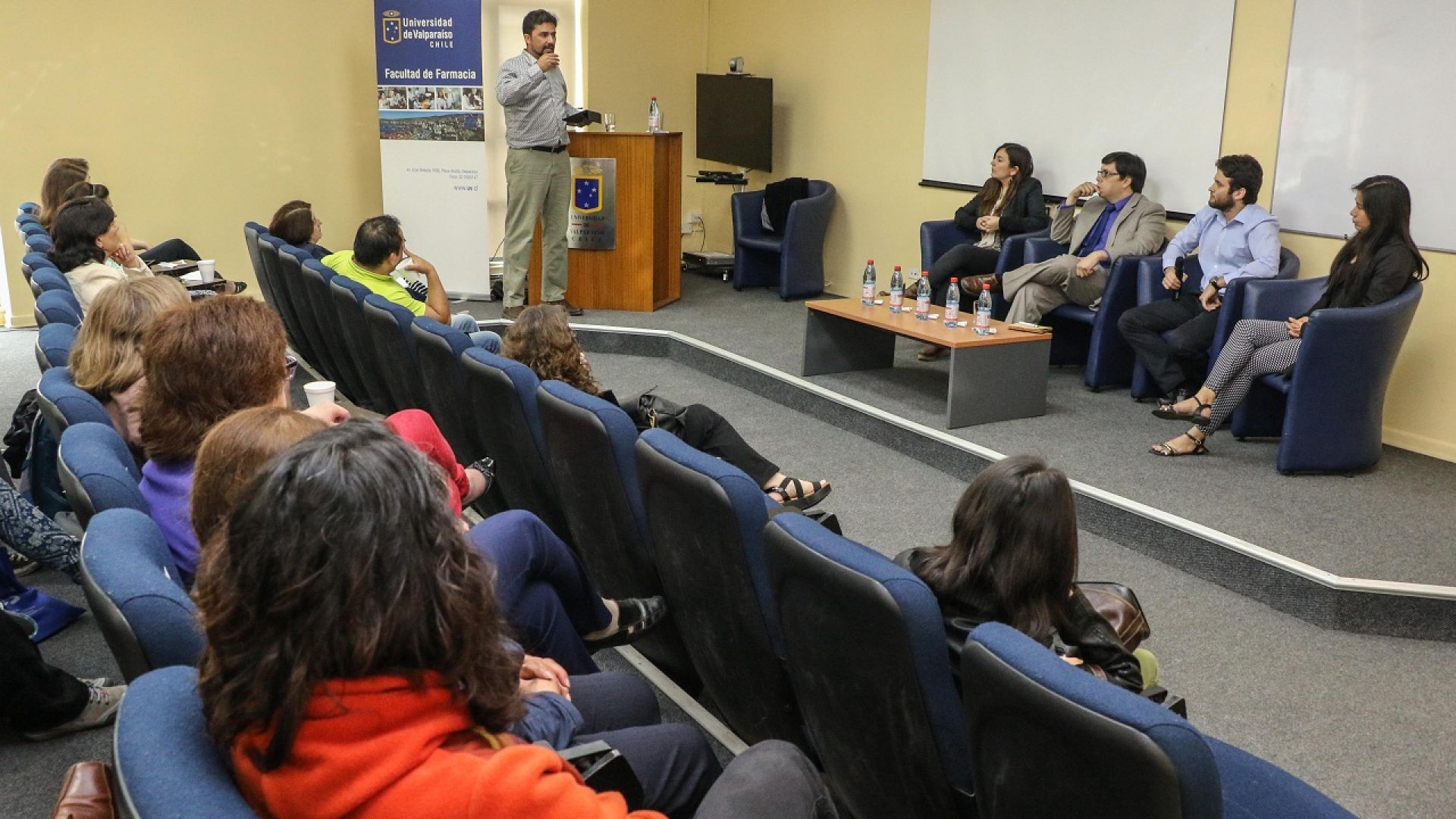 Los panelistas invitados fueron Marco Moreno, administrador público, creador del modelo de farmacia comunal de Renca; Jorge Cárdenas, químico farmacéutico, encargado de Farmacias Populares del Ministerio de Salud; Ana Victoria Nieto, directora técnica de la Farmacia Comunitaria de Valparaíso, y su homóloga de Viña del Mar, Yovanna Maira, quienes abrieron la discusión con una audiencia bastante participativa.
