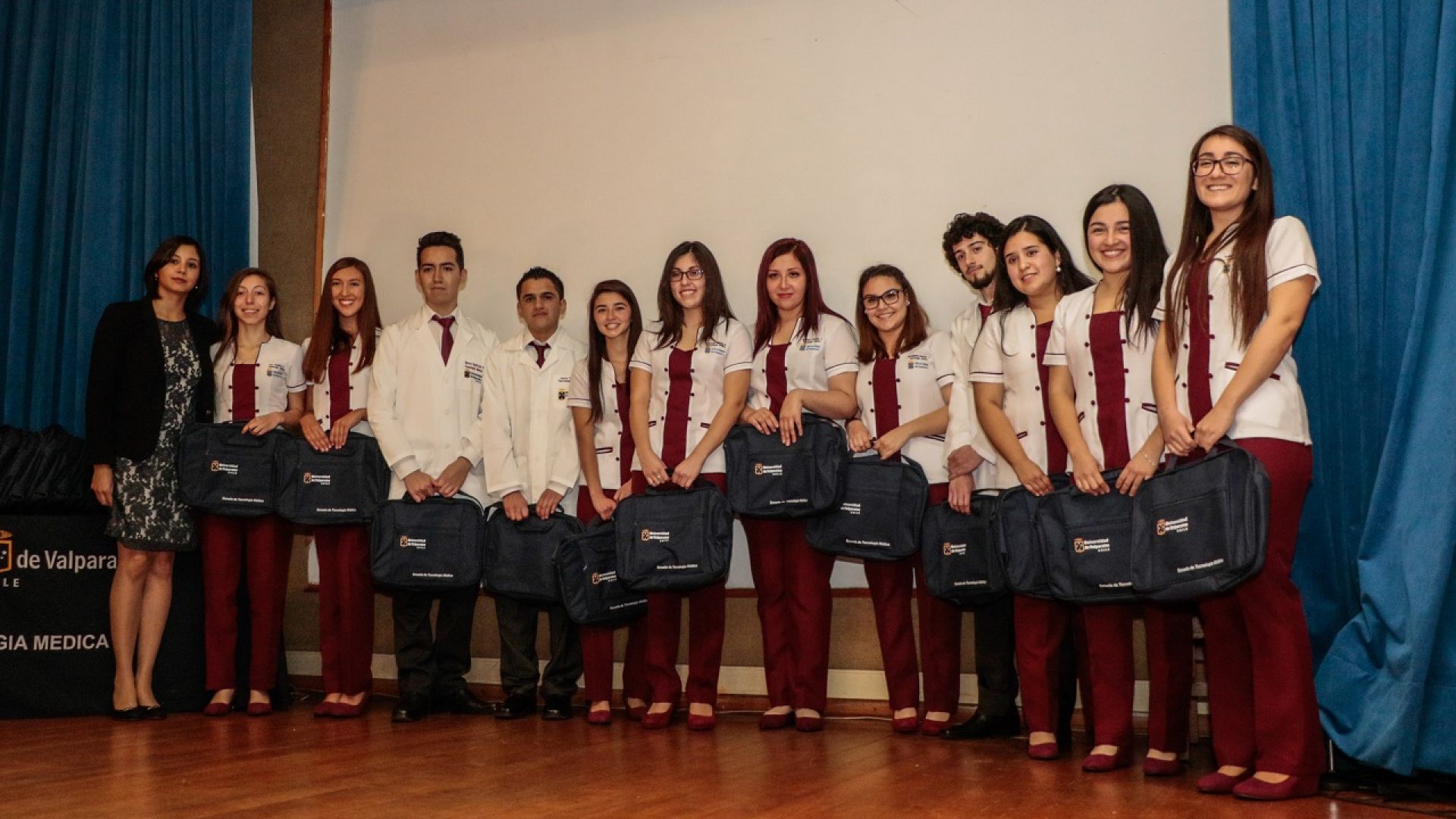 Cuarenta y tres estudiantes de tercer año de la Escuela de Tecnología Médica de la Universidad de Valparaíso, Casa Central, vistieron por primera vez el uniforme que los distinguirá en sus quehaceres en campos clínicos como parte del inicio de su formación profesional.
