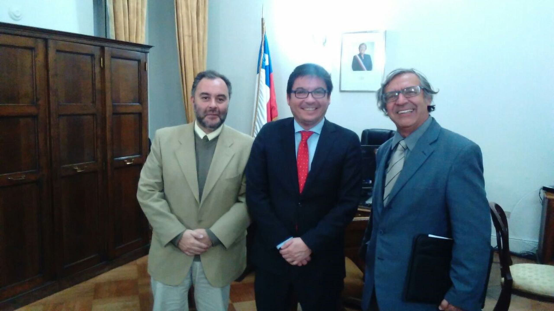 El encuentro tuvo lugar en el despacho del mencionado secretario de Estado y contó también con la presencia del director de la Escuela de Psicología de la Universidad de Santiago, Mario Morales, quien también integra la Psicocuech.