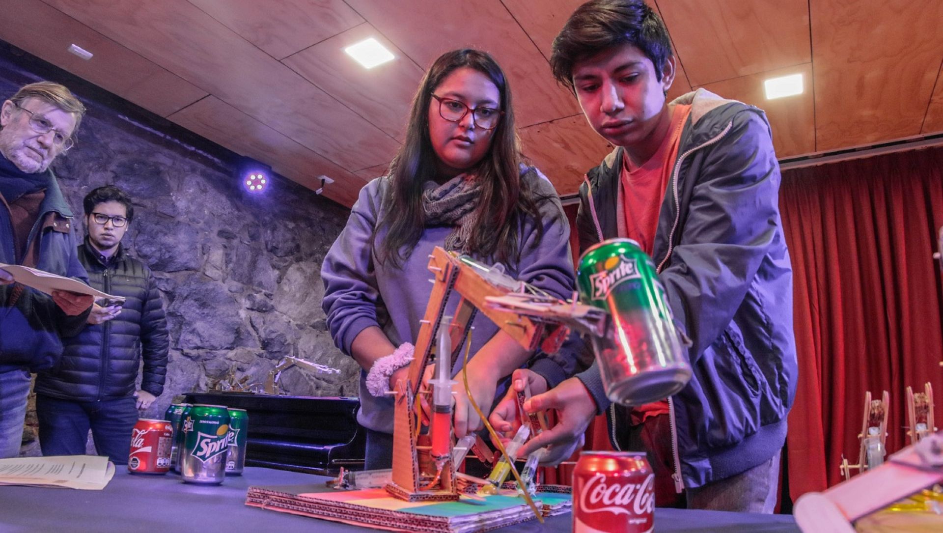 Prototipos de brazos hidráulicos, basados en conceptos de robótica y construidos con materiales reciclados presentaron estudiantes de segundo año de la Escuela de Ingeniería Civil Industrial como parte de la unidad Manufactura Limpia y Verde de la asignatura Mundo Contemporáneo y Desafíos de la Ingeniería, dirigida por los académicos Eduardo Lara y Erik Schulze.