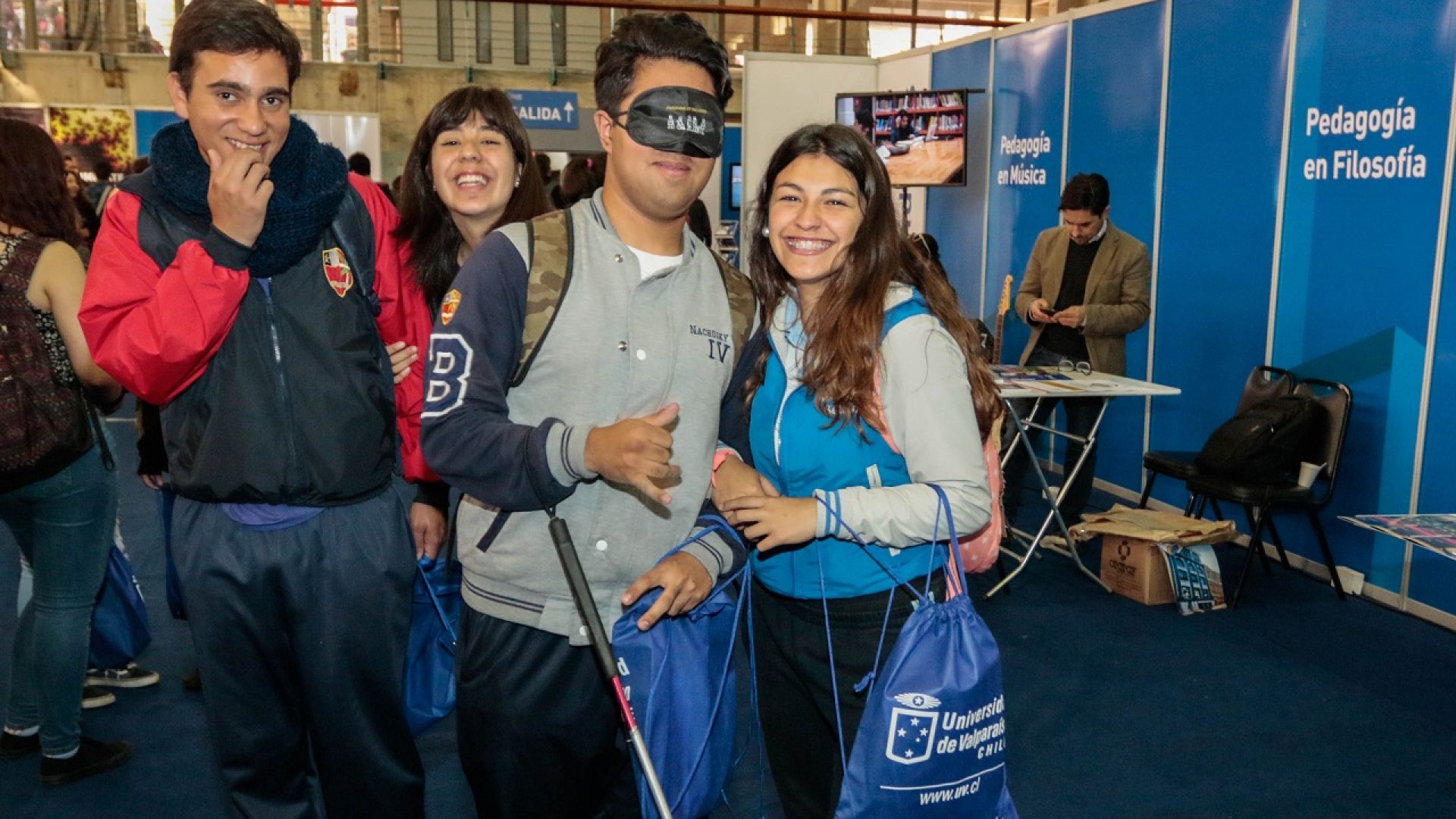 Los jóvenes, que visitaron la Expo UV participaron con entusiasmo de la iniciativa, que les permitió experimentar la vida con diferentes tipos de discapacidad. Es el caso de Joaquín Sepúlveda, alumno del Colegio Siglo XXI. El escolar se tapó la vista y deambuló acompañado de una compañera por distintos lugares de la feria vocacional.