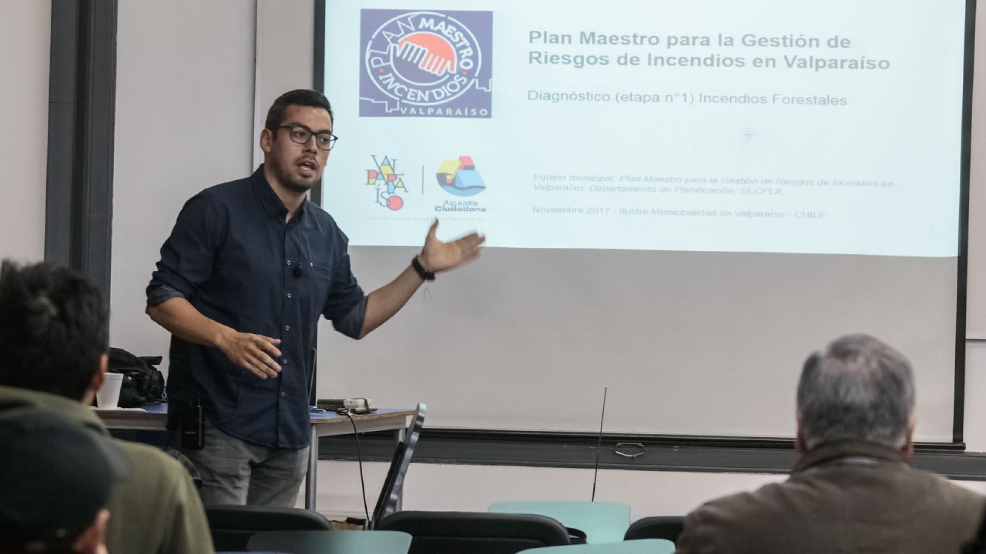 Según explicó Piñones, el objetivo de su conferencia fue “presentar el contexto desde donde surge el plan, que básicamente son las tragedias de incendio y dar conocer un plan maestro que sea una hoja de ruta orientadora de iniciativas para establecer en Valparaíso que permita coordinar diferentes iniciativas tanto del municipio como entidades públicas y privadas, en torno a eso dar una propuesta de mitigación ante el riesgo de incendio”.