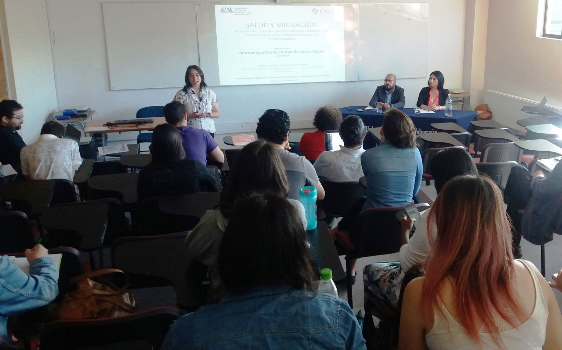 Por su parte, la directora del Departamento de Salud Pública de la Escuela de Medicina de la UV, Katherine Cuevas, resaltó la importancia analizar el vínculo entre salud y migraciones en el contexto de la interculturalidad, por ser un asunto de gran relevancia, tanto para la sociedad en general como para los profesionales y sistemas de salud en particular.