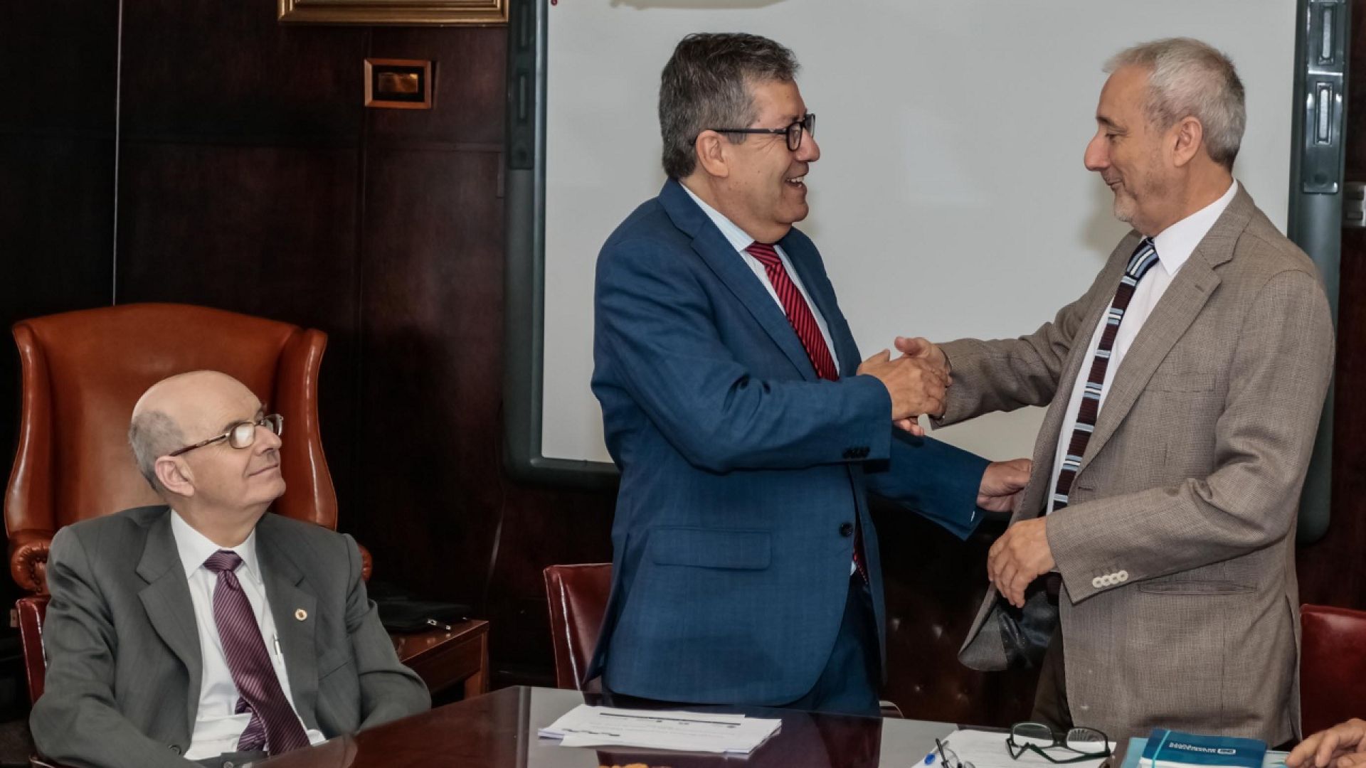 En el cambio de mando y premiación de las tesis, estuvieron presentes también el rector Claudio Elórtegui, de la Pontificia Universidad Católica de Valparaíso, y Pedro Santander representando a la Universidad Técnica Federico Santa María, junto a los miembros de la Comisión Macro, que coordina las actividades de las diversas comisiones y ejecuta los acuerdos propuestos al Consejo.