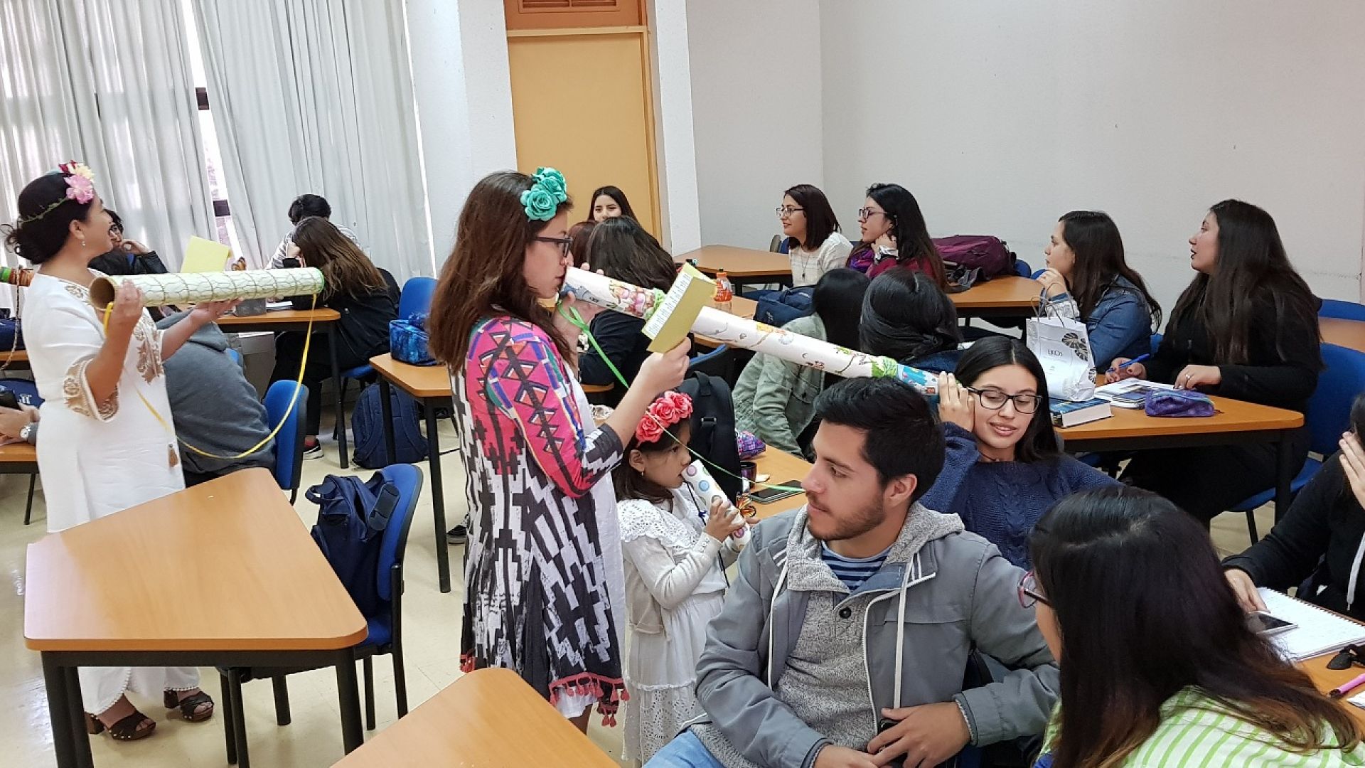 Las actividades comenzaron este lunes con la intervención de tres profesoras egresadas de la Escuela de Cuenta Cuentos de las Fundación Mustakis, quienes hicieron un recorrido por distintas salas de clase y departamentos del campus, exhibiendo la magia de estos microrrelatos hablados y susurrados.