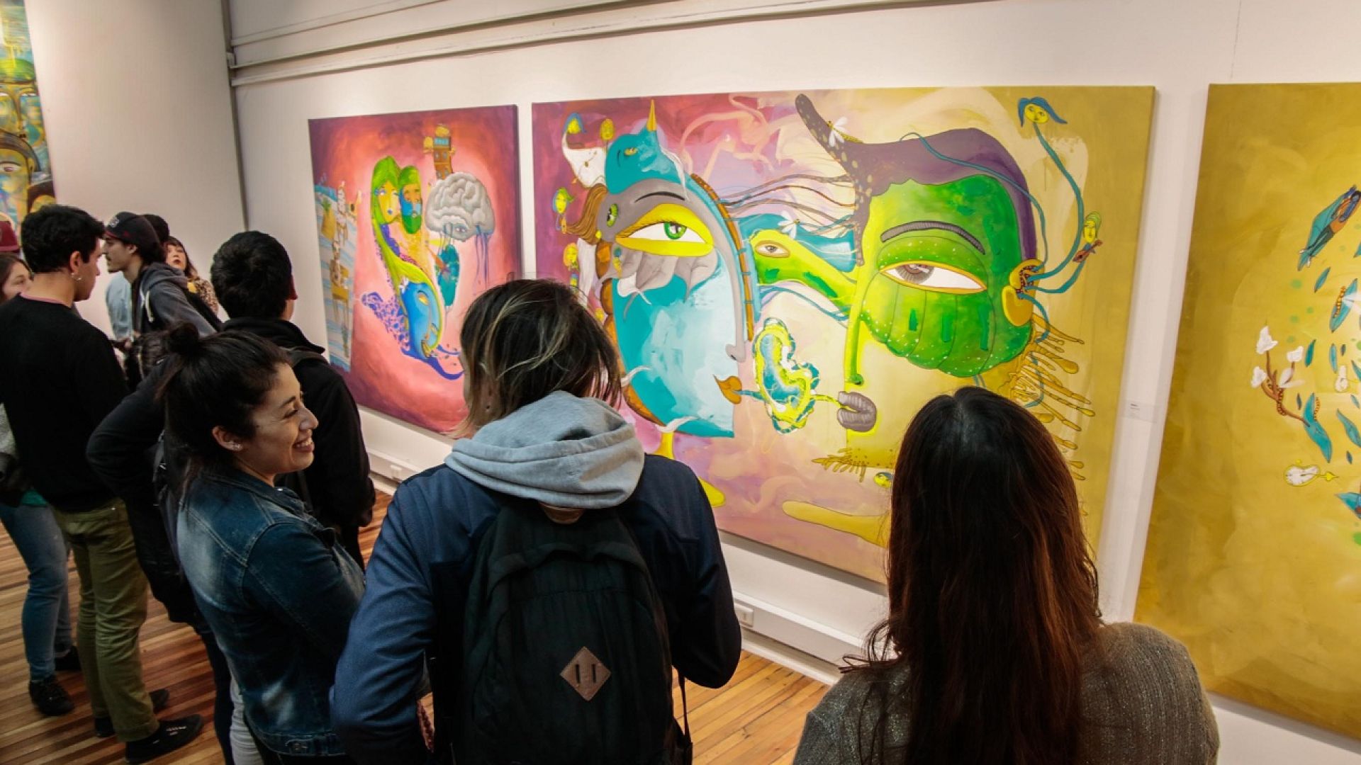 Hasta el 12 de mayo se exhibe en la sala El Farol de la Universidad de Valparaíso la muestra “Yuxtaposicion”, colección de once obras de gran formato desarrollada especialmente para la galería por la reconocida dupla de artistas urbanos Un Kolor Distinto: Cynthia Aguilera y Sammy Espinoza. Se trata de un hito para los artistas, que por primera vez exponen telas; y para la sala, que nunca había presentado obras de muralistas.