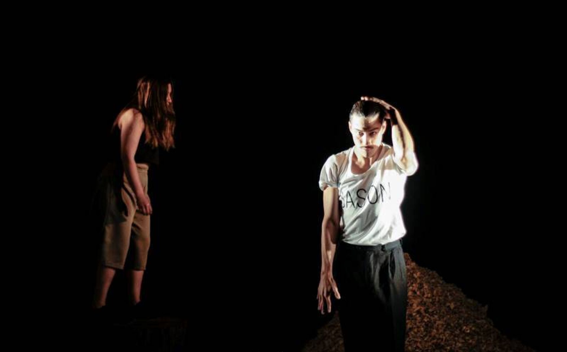 “La propuesta estética de la obra trabaja fielmente con la utilización de las materialidades como elementos constructores del espacio, principalmente con la madera, presentada en tres estados diferentes, que nos muestran el desgaste de esta materia, proponiendo diversas imágenes desde la directa utilización y manipulación de cada uno de los elementos, construyendo así el lenguaje de la escenificación”, agrega.
