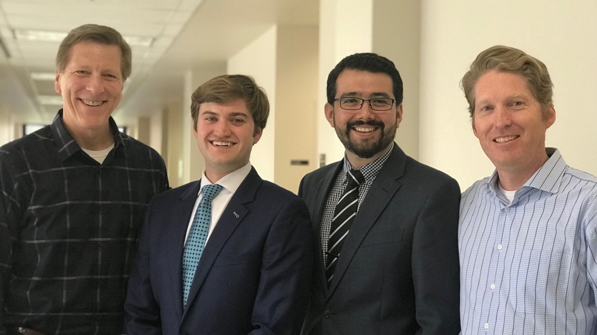 Día de la defensa de tesis. De izquierda a derecha: Robert O. Williams III (Jefe de la división Molecular Pharmaceutics and Drug Delivery), Zachary Warnken (compañero de programa), Daniel Moraga Espinoza, Hugh D.C. Smyth ( supervisor directo del doctorado)
