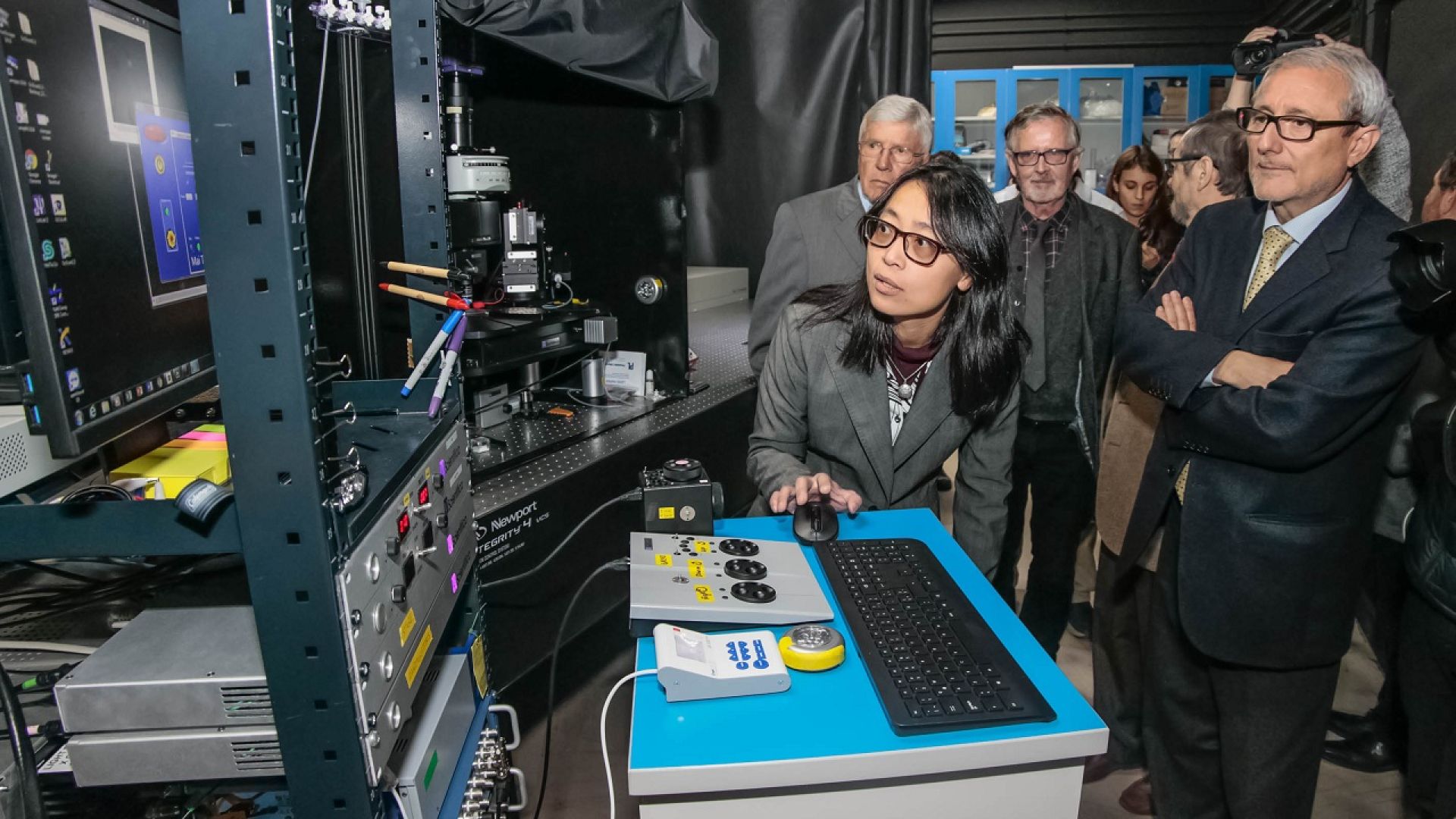 En una ceremonia protocolar, el rector de la Universidad de Valparaíso, Aldo Valle, y el director del Centro Interdisciplinario de Neurociencia de la Universidad de Valparaíso (CINV), doctor Ramón Latorre, presentaron de manera oficial el primer microscopio de dos fotones que permitirá estudiar en Chile el funcionamiento del sistema nervioso central en condiciones de salud y enfermedad.
