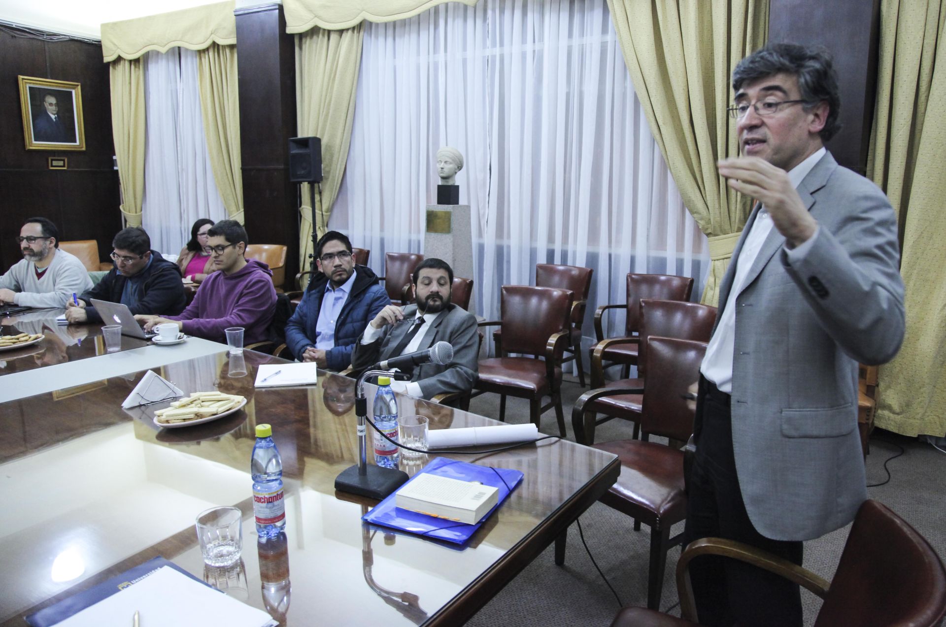 El doctor Maureira se mostró agradecido y honrado por la invitación de la Escuela de Derecho, tras participar en el seminario ofrecido a los alumnos del Doctorado en Derecho. Su ponencia se integró temáticamente en una de las asignaturas obligatorias correspondientes al primer semestre, que versa sobre pensamiento jurídico moderno y contemporáneo.