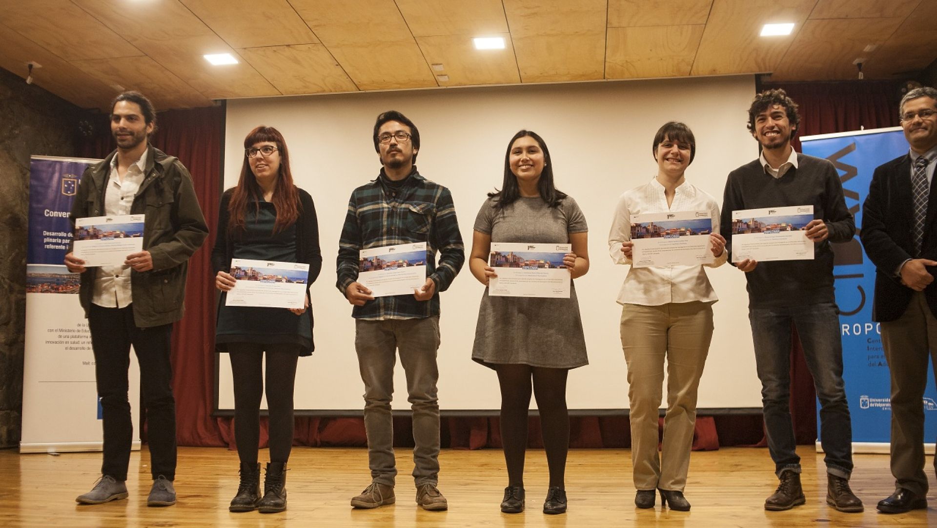 La ceremonia tuvo lugar en la Sala Rubén Darío del Centro de Extensión UV y fue presidida por el rector Aldo Valle. También estuvieron presentes el contralor interno Cristián Moyano y los vicerrectores de Vinculación con el Medio y de Investigación, Eva Madrid y Adrián Palacios, respectivamente.