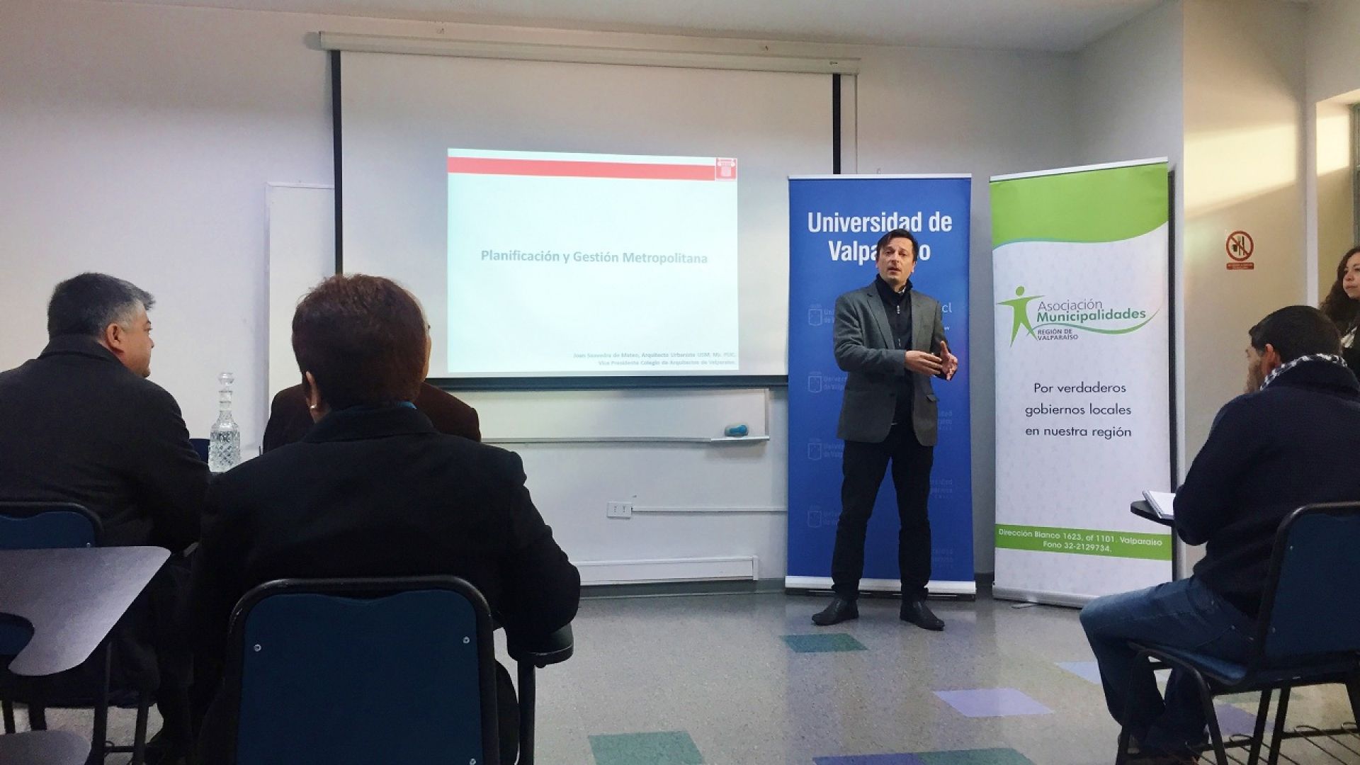 Una interesante exposición realizó el urbanista y vicepresidente del Colegio de Arquitectos de Valparaíso, Joan Saavedra, respecto de las nuevas políticas públicas del ordenamiento administrativo nacional en relación con la promoción de gobiernos metropolitanos. El arquitecto señaló la relevancia del diseño urbano y de la gobernanza metropolitana en la mejora de la calidad de vida de la población y en la eficacia de un modelo más descentralizado que permita mayor gestión, gobernabilidad y desarrollo regional.