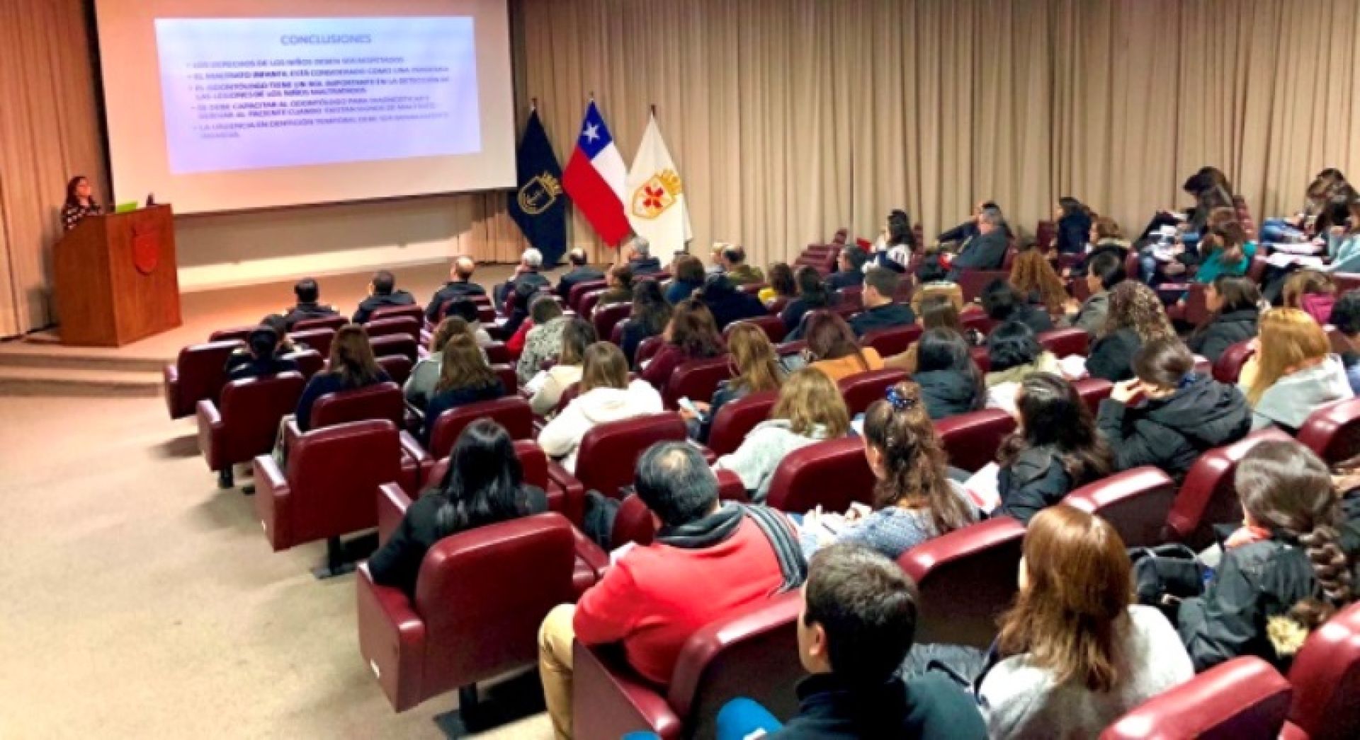 La actividad estuvo especialmente dirigida a odontólogos, auxiliares paramédicos, enfermeros, psicólogos, trabajadores sociales y otros profesionales vinculados a instituciones públicas y privadas de la salud y a centros de atención pertenecientes a las Fuerzas Armadas y de Orden. También asistieron estudiantes y académicos interesados en el tema.