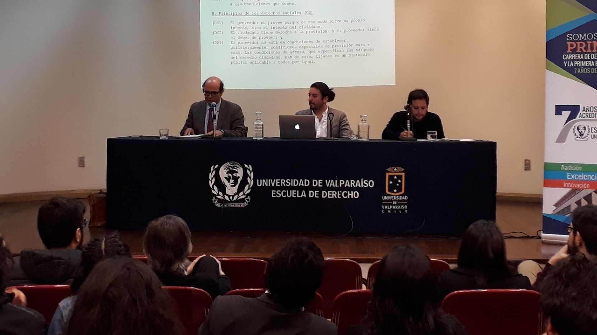 Además, Dante Grunert se refirió a la importancia de tratar estos temas dada la relevancia y actualidad que tienen para una Escuela de Derecho. “Nuestra escuela tiene una enorme tradición en filosofía del derecho y en filosofía política. Lamentablemente, en la actualidad son cada vez menos los estudiantes que se interesan en estas temáticas, por considerarlas de escasa utilidad para el ejercicio de la profesión abogadil. Los profesores Fernando Atria y Hugo Herrera, ambos de formación jurídica -este último egresado de la Escuela de Derecho de la UV- son, sin embargo, actualmente dos de los intelectuales más influyentes en la política de nuestro país. Me parece sumamente importante que estudiantes y profesores contribuyamos a retomar esta tradición, tornando a nuestra Escuela nuevamente en un espacio relevante a nivel nacional para la discusión de estas temáticas y favoreciendo una descentralización de la actividad intelectual”.
