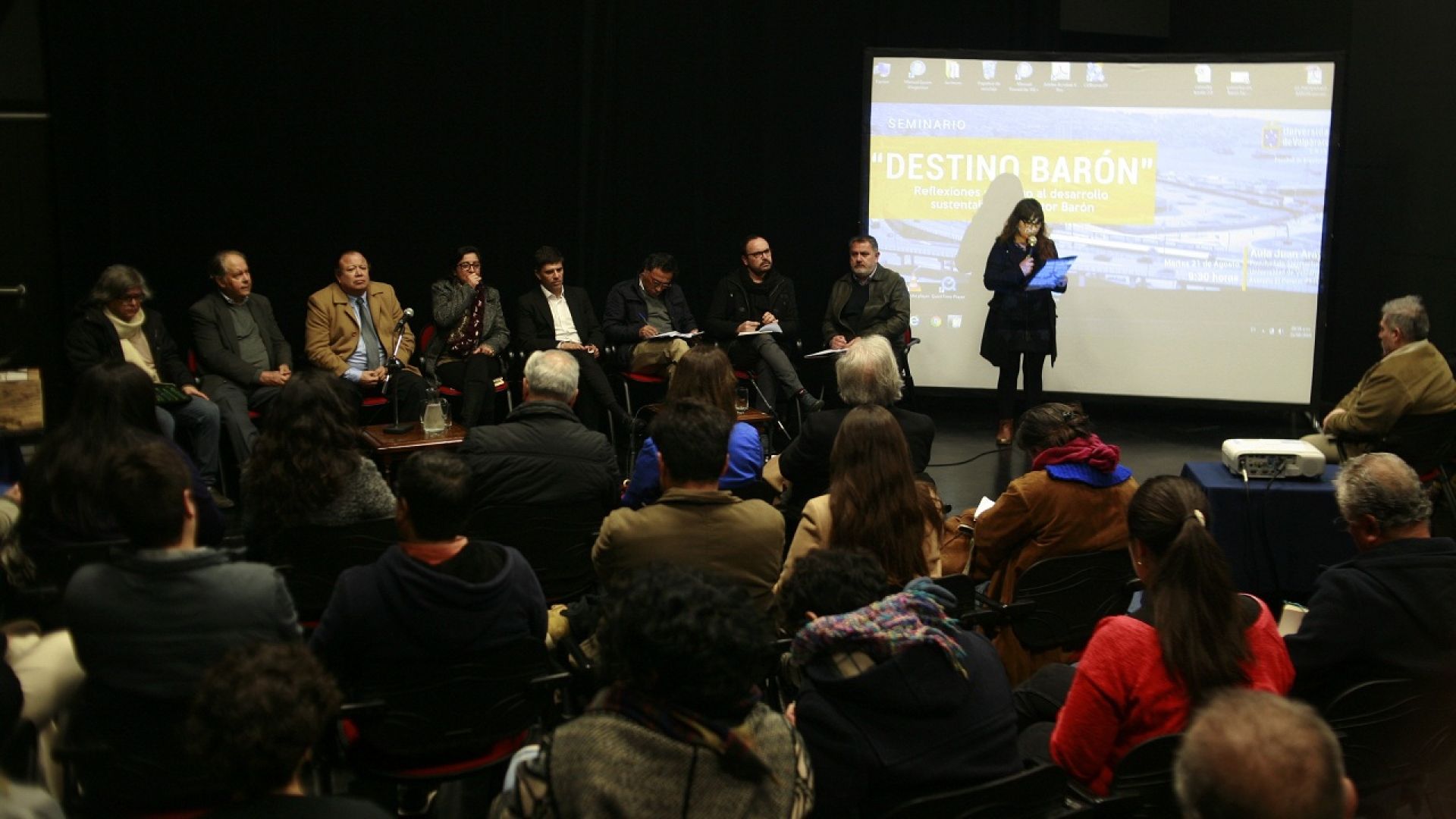 Con un público integrado por estudiantes, profesores y público general, los panelistas analizaron los diversos usos que podría tener el paño Barón, donde las propuestas apuntan a espacios recreativos, portuarios o mixtos. El seminario fue inaugurado por el decano de la Facultad, Juan Luis Moraga, quien destacó el hecho de contar con la presencia de los panelistas para debatir un tema sensible que definirá parte importante del futuro de la ciudad y relevar la mirada de la población a través de consultas ciudadanas y actividades de reflexión.