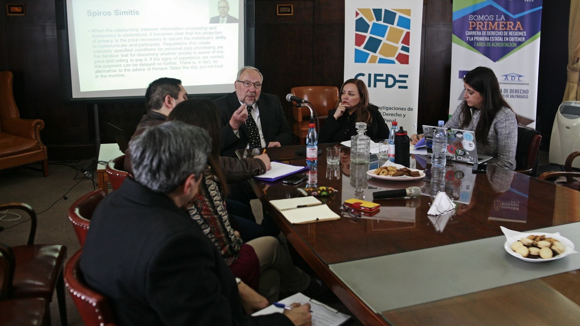 En la Sala de Consejo Ítalo Paolinelli Monti de la Escuela de Derecho de la Universidad de Valparaíso se llevó a cabo el seminario de discusión “Regulación de la protección de datos”, cuyo expositor principal fue el doctor Athi Saarempää, de la Universidad de Laponia, Finlandia. El evento fue organizado por la académica Patricia Reyes, investigadora asociada al Centro de Investigaciones de Filosofía del Derecho y Derecho Penal (CIFDE) de la Universidad de Valparaíso, quién además estuvo a cargo de comentar la exposición del profesor Saarempää, haciendo un contrapunto de los principales aspectos señalados por el profesor y la situación chilena.