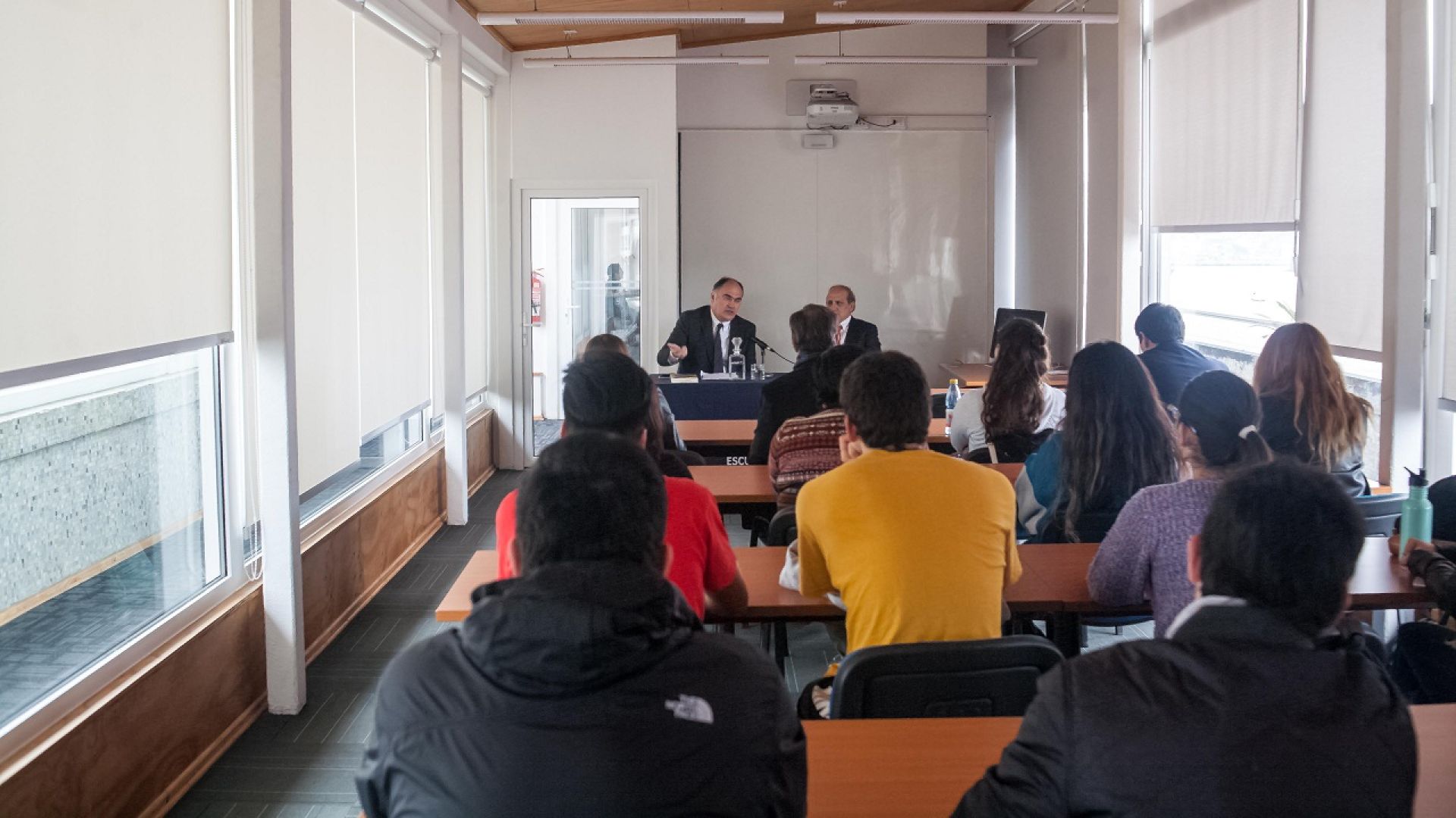 Al acto, llevado a cabo en la sala 12 de la Escuela de Derecho de la UV, asistieron el director de la Escuela de Derecho, Claudio Oliva; la secretaria de la Facultad de Derecho y Ciencias Sociales, Inés Robles; los académicos del Departamento de Derecho Económico y Tributario Pedro Arraztoa y Pablo Bustos; el profesor de Derecho Económico y actual secretario general de la PUCV, doctor José Luis Guerrero, y una veintena de estudiantes de la Escuela de Derecho de la Universidad de Valparaíso y de la PUCV.