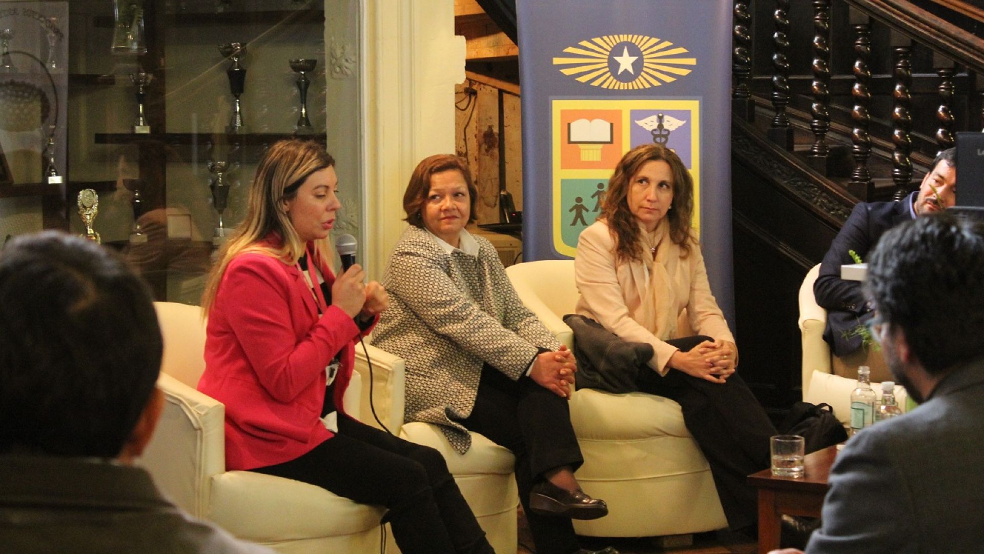 En la ceremonia participaron Carla Cofré, Claudio Cisternas y Ximena Terrazas, que estudiaron la carrera en distintas épocas y que, más allá de las particulares expe-riencias laborales previas, iniciaron procesos de emprendimientos que los convirtió en exitosos empresarios. Cofré, que se tituló recientemente del programa de con-tinuidad de estudios, es propietaria de una cadena de accesorios para teléfonos en el país y su objetivo es poder internacionalizar la marca Carlicosas; Ximena Terrazas, que es directora ejecutiva de la empresa consultora de negocios Alta Conexión, detalló la situación actual del emprendimiento en nuestro país según estudios re-cientes; y Claudio Cisternas contó su experiencia tras ser un alto ejecutivo de la banca y empresas de retail para hoy ser socio de Proqualitas, que asesora a grandes empresas en temas de desarrollo organizacional y que el año pasado fue una de las firmas reconocidas en la categoría Changemakers (agentes de cambio positivo) en los premios “B Corp Best for the World”, por su positivo impacto socioambiental durante el 2017, siendo distinguida entre más de 2.500 empresas B certificadas a nivel mundial.